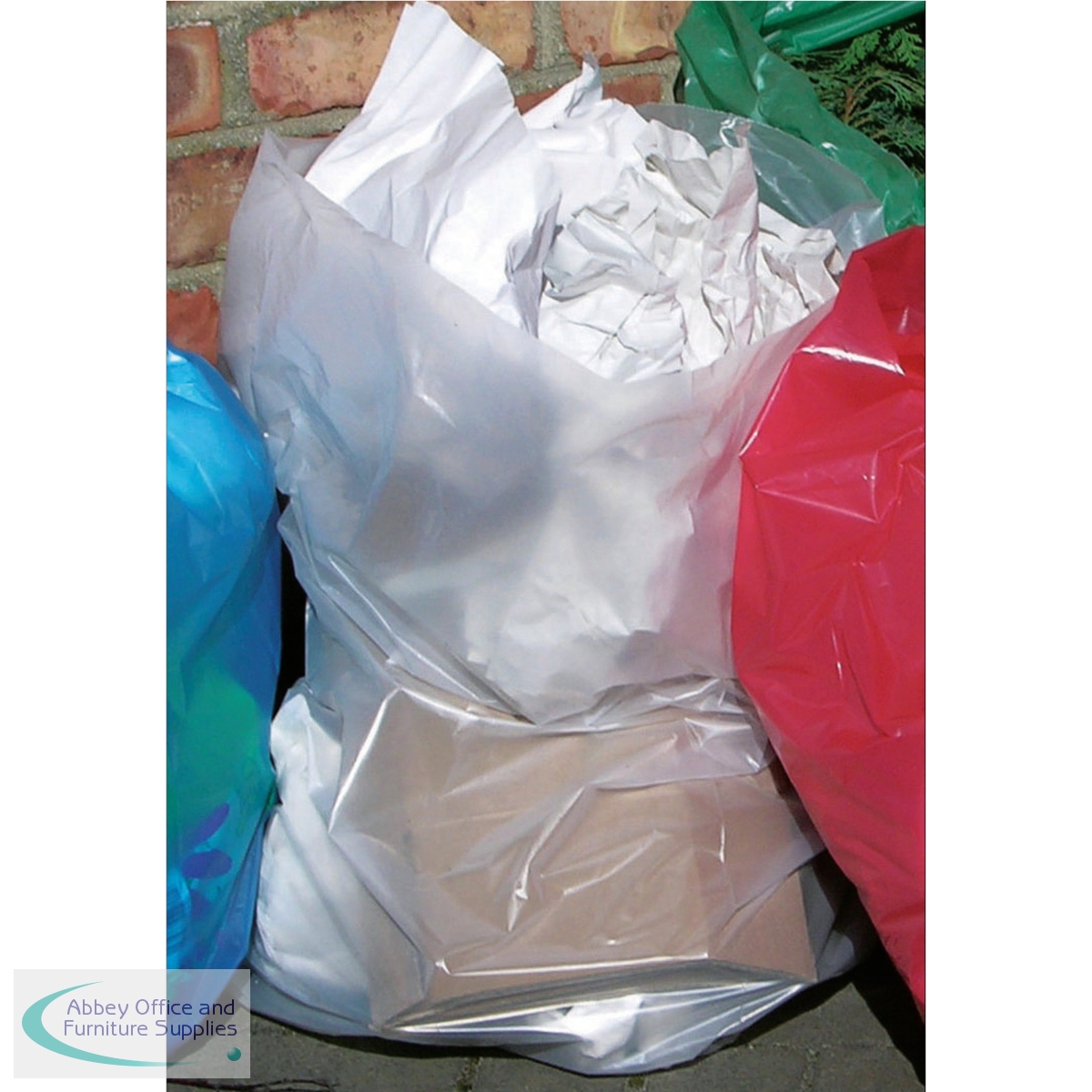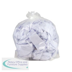 Ideal for colour coded waste disposal schemes, commercial waste, office waste or healthcare waste, these clear polythene bags from 2Work come on a roll of 50 and are perforated for ease of selection. Each bag has a capacity of 90 litres and is classed as medium duty, suitable for a variety of disposal needs. The bags are gusseted and will expand when filled in order to fit in as much as possible.