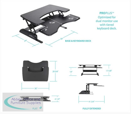 If you know the value of using two screens, the VARIDESK Pro Plus height adjustable standing desk is for you. The Pro Plus is the perfect solution for the dual-screen wielding master of domains. Great for users who need the extra screen real estate, the Pro Plus’s 36”-wide raised display shelf is roomy enough for two 24” monitors (up to 35lbs). The recessed keyboard tray with extended mouse area is big enough for most keyboards and mice, so you can whip those spreadsheets and presentations into award-winning shape.