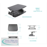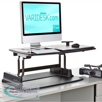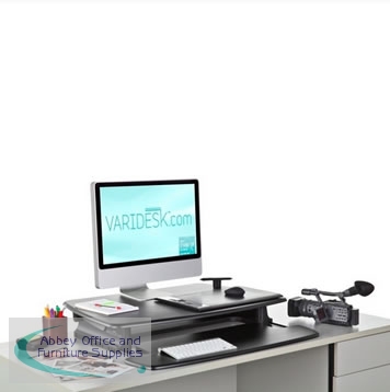 VARIDESK SingleIntroducing the VARIDESK – a whole new way to work sitting down or standing up! This revolutionary platform is affordable and easy to use, allowing you to work either sitting or standing. It's the perfect way to increase your energy, your health, and your productivity.