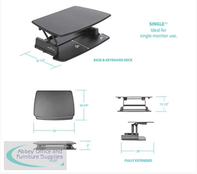 This single monitor version of the VARIDESK has a black top and will perfectly suit offices and homes alike. Technical Specifications