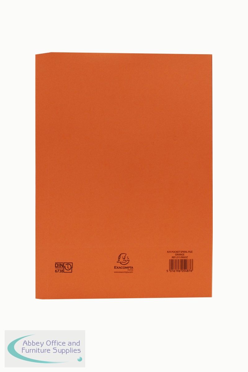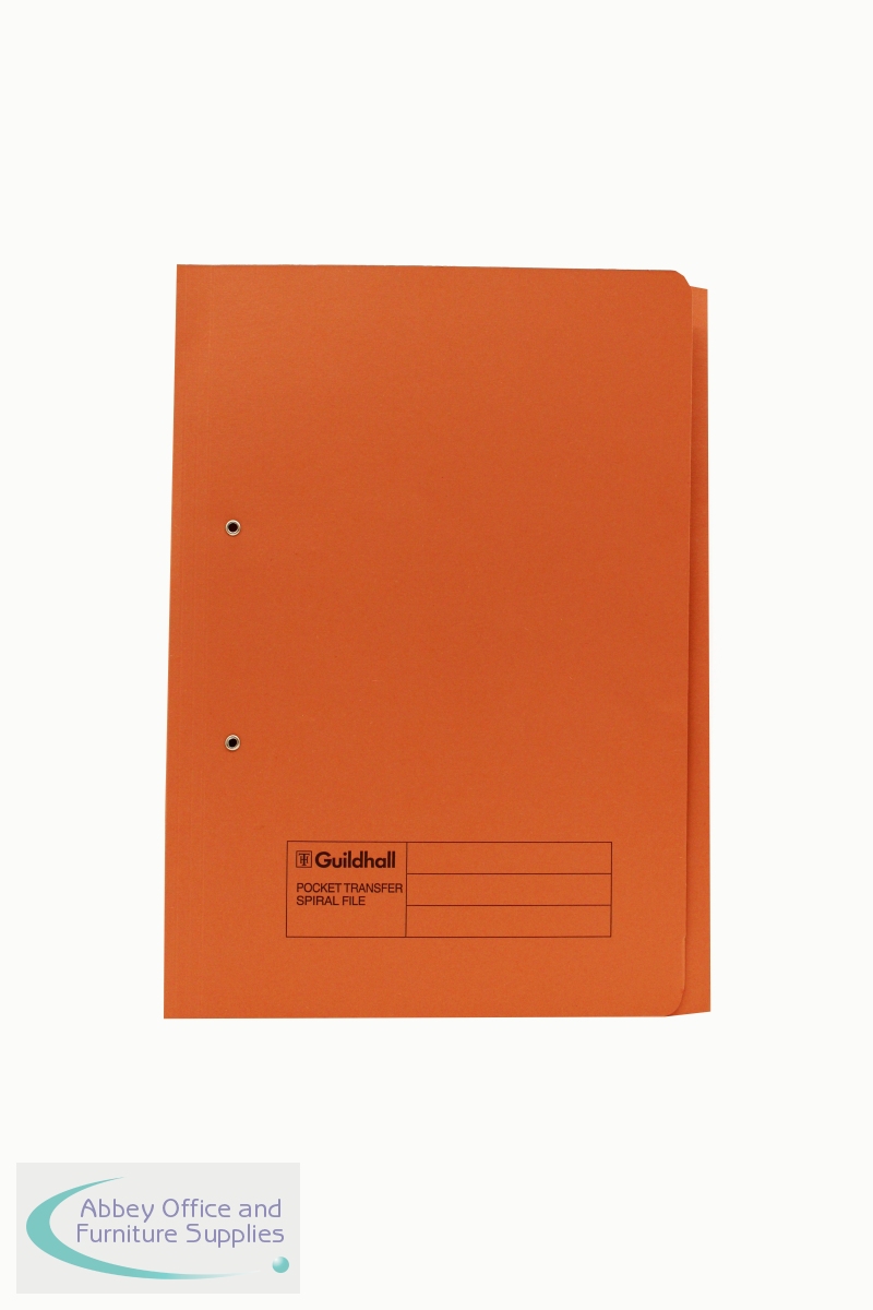 GH25487 - Exacompta Guildhall Right Hand Transfer Spiral Pocket File Foolscap Orange (Pack of 25) 211/9063Z