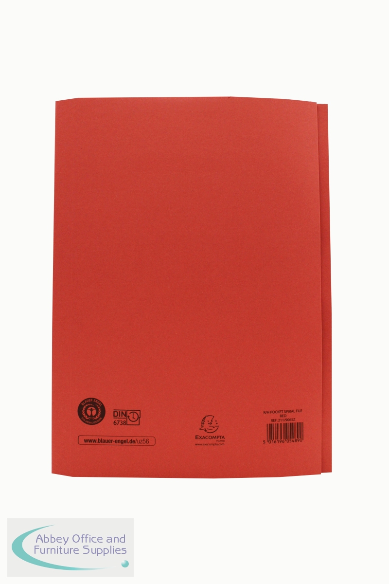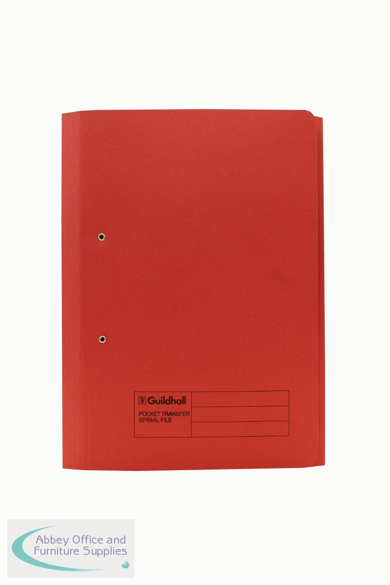 GH25489 - Exacompta Guildhall R/Hand Transfer Spiral Pocket File 315gsm Foolscap Red (Pack of 25) 211/9065Z