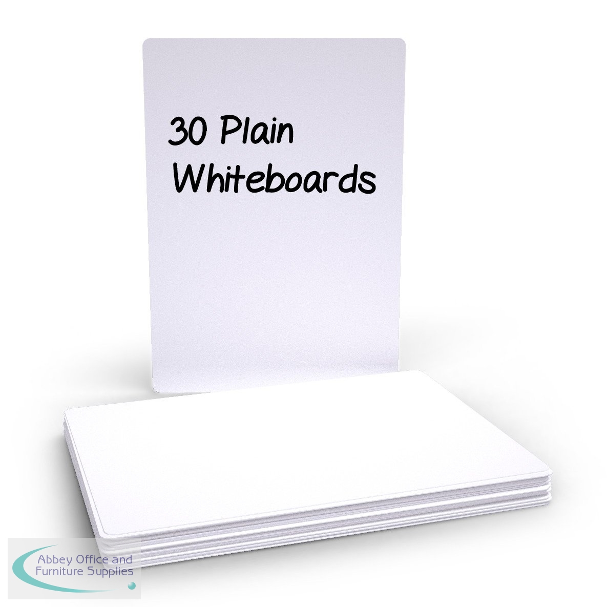 Plain A4 economy whiteboards, designed for individual pupil use. Each board has a tear-resistant, drywipe surface and is plain both sides. Pack of 30 boards. Accessories available separately.
