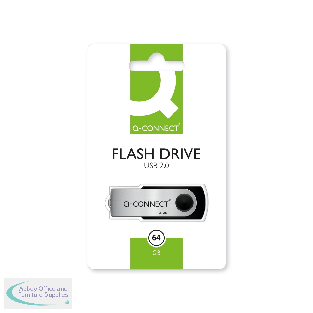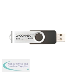 The compact and stylish Q-Connect USB 2.0 Swivel Flash Drive is an economical choice for file transfer and backup. It features a convenient 360 degree swivel casing to protect the USB connector from damage - no cap to lose. There's also a lanyard hole for easy portability. Suitable for Windows and Mac computers, this drive contains 64GB of storage for documents, video, photos and more.