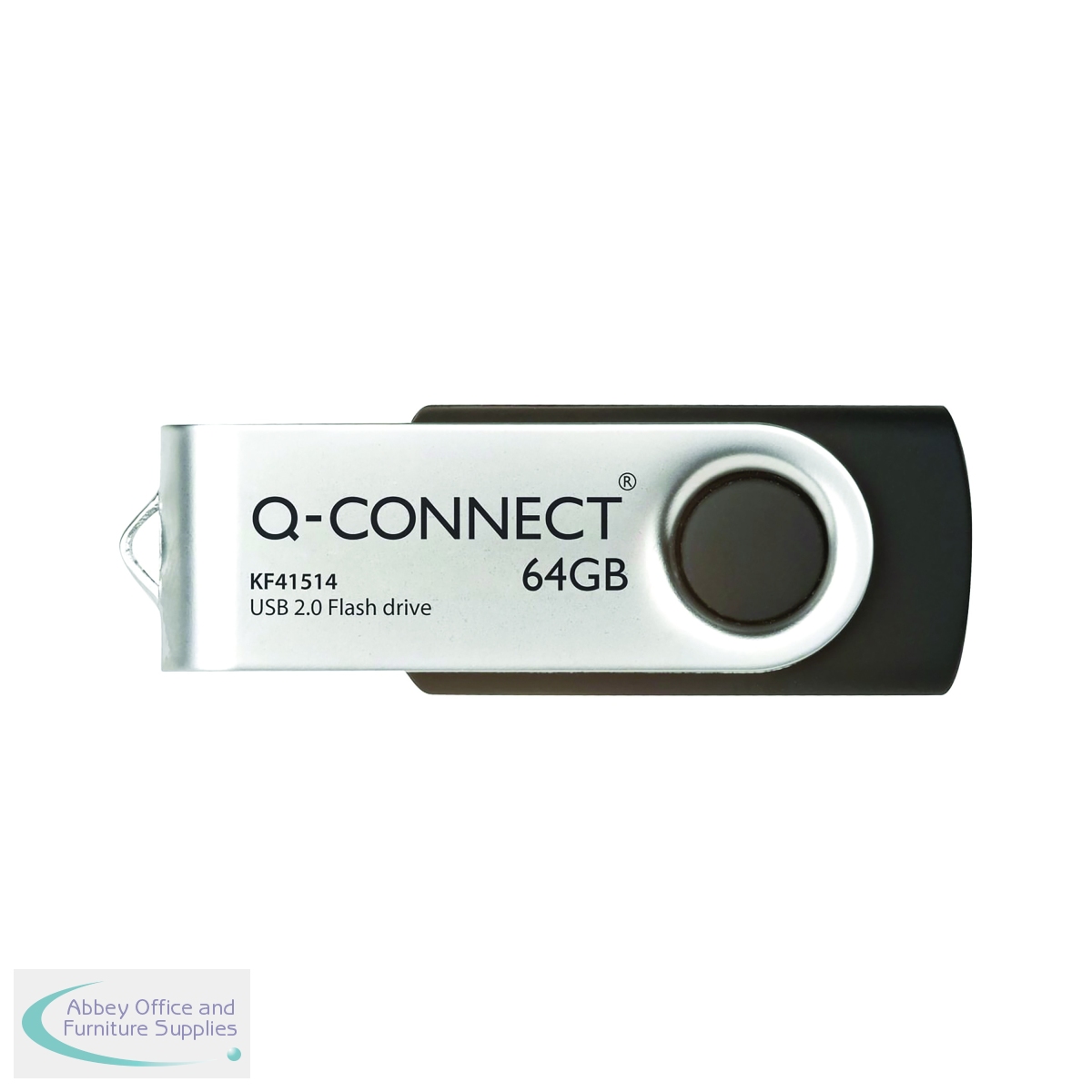 KF41514 - Q-Connect USB 2.0 Swivel 64GB Flash Drive Silver/Black KF41514