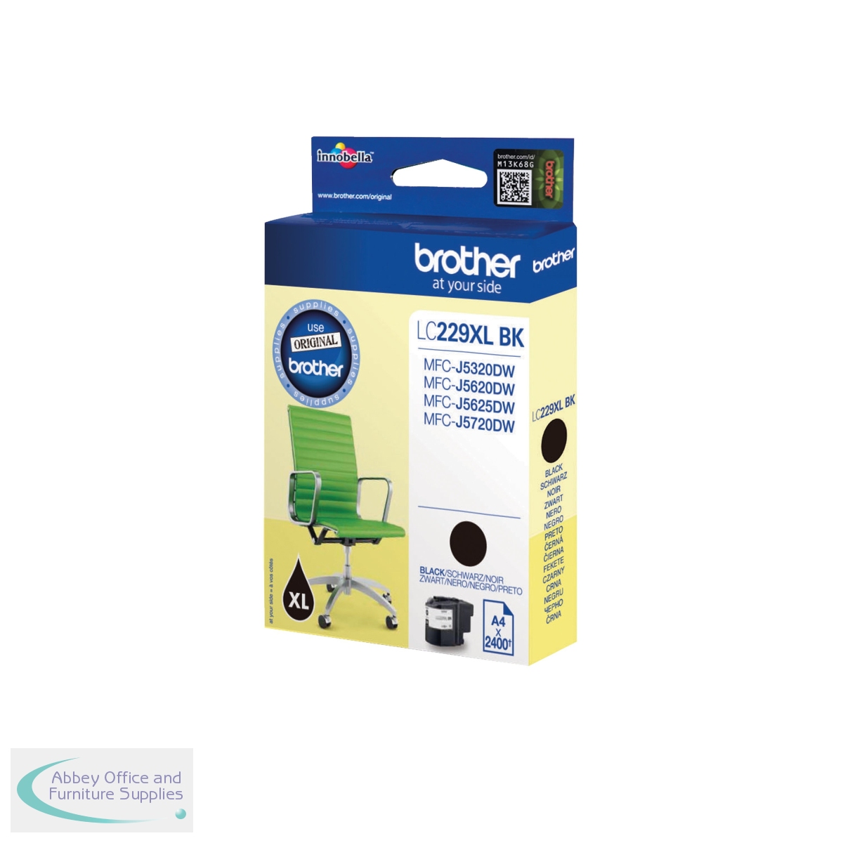 Get the best results from your Brother inkjet printer by using a genuine Brother Black LC229 XL Inkjet Cartridge. This XL cartridge is packed with even more ink to print up to 2,400 pages with impressive results. As a genuine Brother consumable, it provides a more consistent yield, better reliability and outstanding performance.