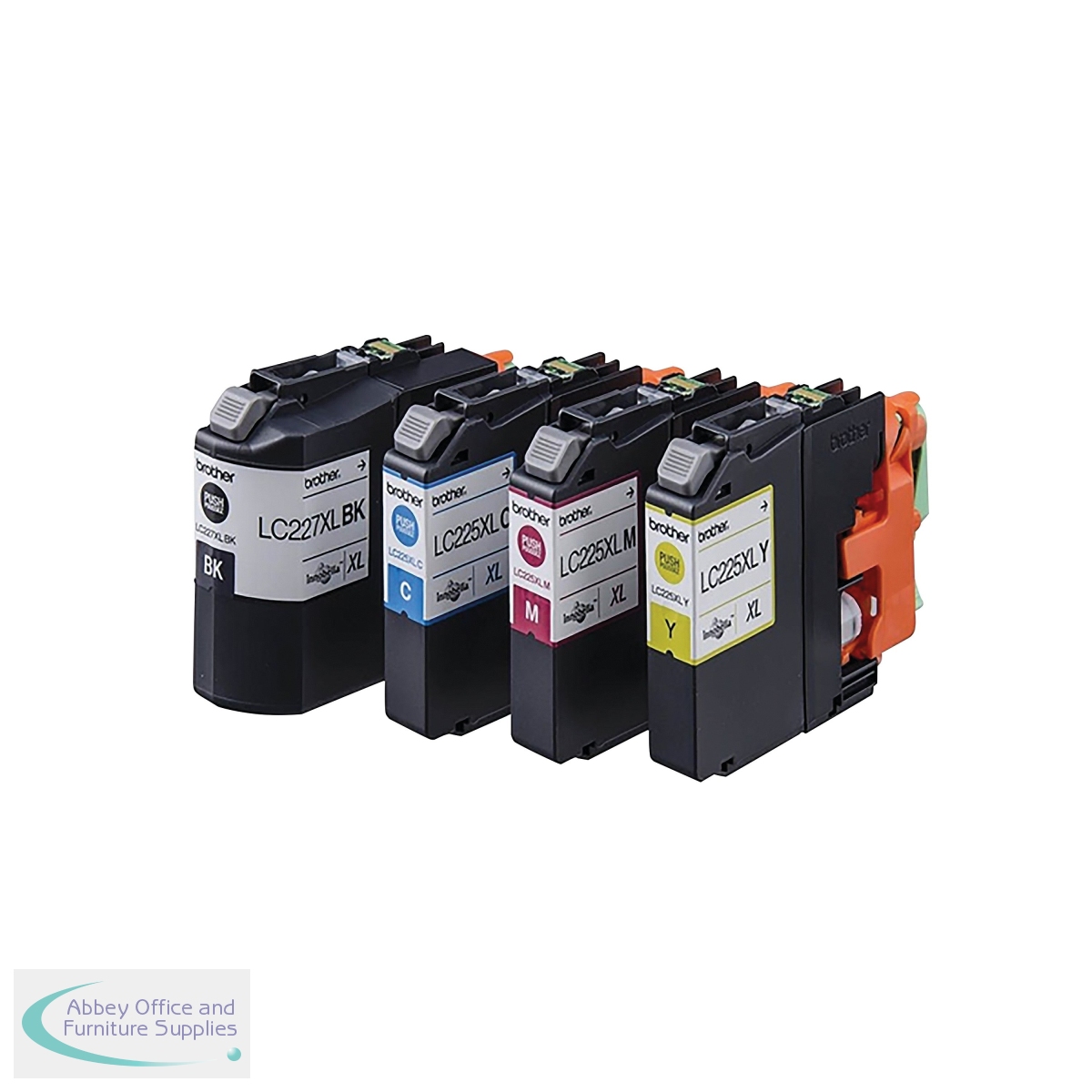Get the best results from your Brother inkjet printer by using this Value Pack of four genuine Brother LC225XL/LC227XK Inkjet Cartridges, containing one each of black, cyan, magenta and yellow. Each cartridge is packed with enough ink to print up to 1,200 pages with impressive results. Only genuine Brother consumables produce a consistent yield, great reliability and outstanding performance.