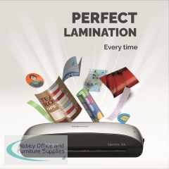 User friendly and designed for moderate use in home and office environments, the Spectra A4 Laminator from Fellowes is ideal for use with important and often handled documents. Taking only 4 minutes to warm up, the Spectra will laminate documents of up to 125 microns, is supplied with a handy release lever to disengage the pouch in the event of a misfeed and is fitted with an evironmentally astute sleep mode which activates after 30 minutes of inactivity. Includes a 10 pouch laminating starter kit.
