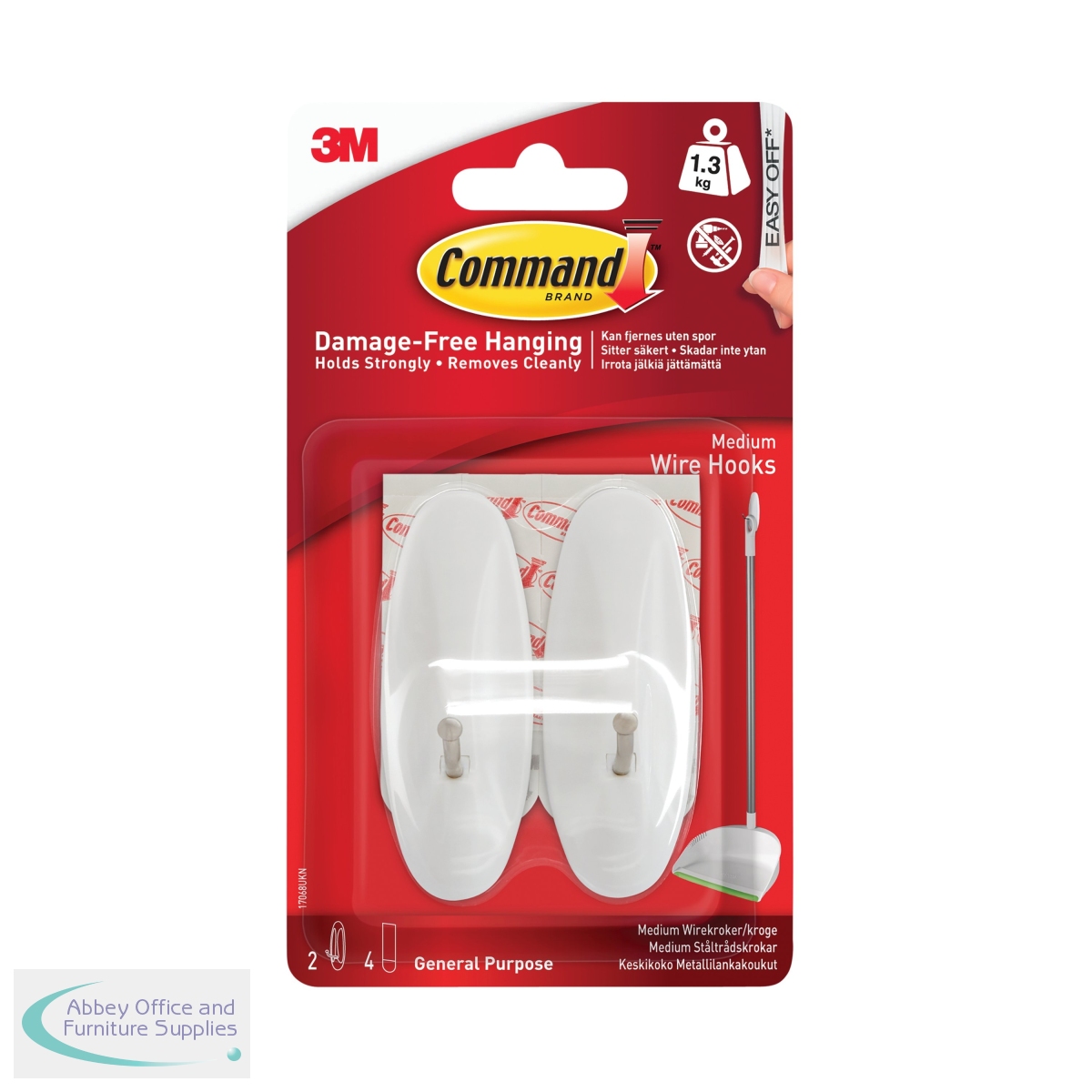 Adhesive hooks can drastically reduce the amount of blemishes and small, yet unsightly abrasions on your walls and surfaces. Rendering nails a thing of the past, the high quality 3M Command Medium Wire Hooks can hold a great deal of weight and provide a reliable addition to your home. Using adhesive bases, these hooks are designed for pictures and other decorative uses, but the strong wire construction can also hold a wide array of different items, including electrical appliances such as hairdryers, making these hooks ideal for hotels and other service industries. This pack includes 2 medium hooks and 4 adhesive strips.