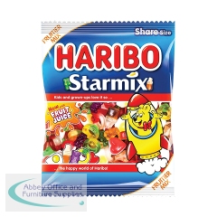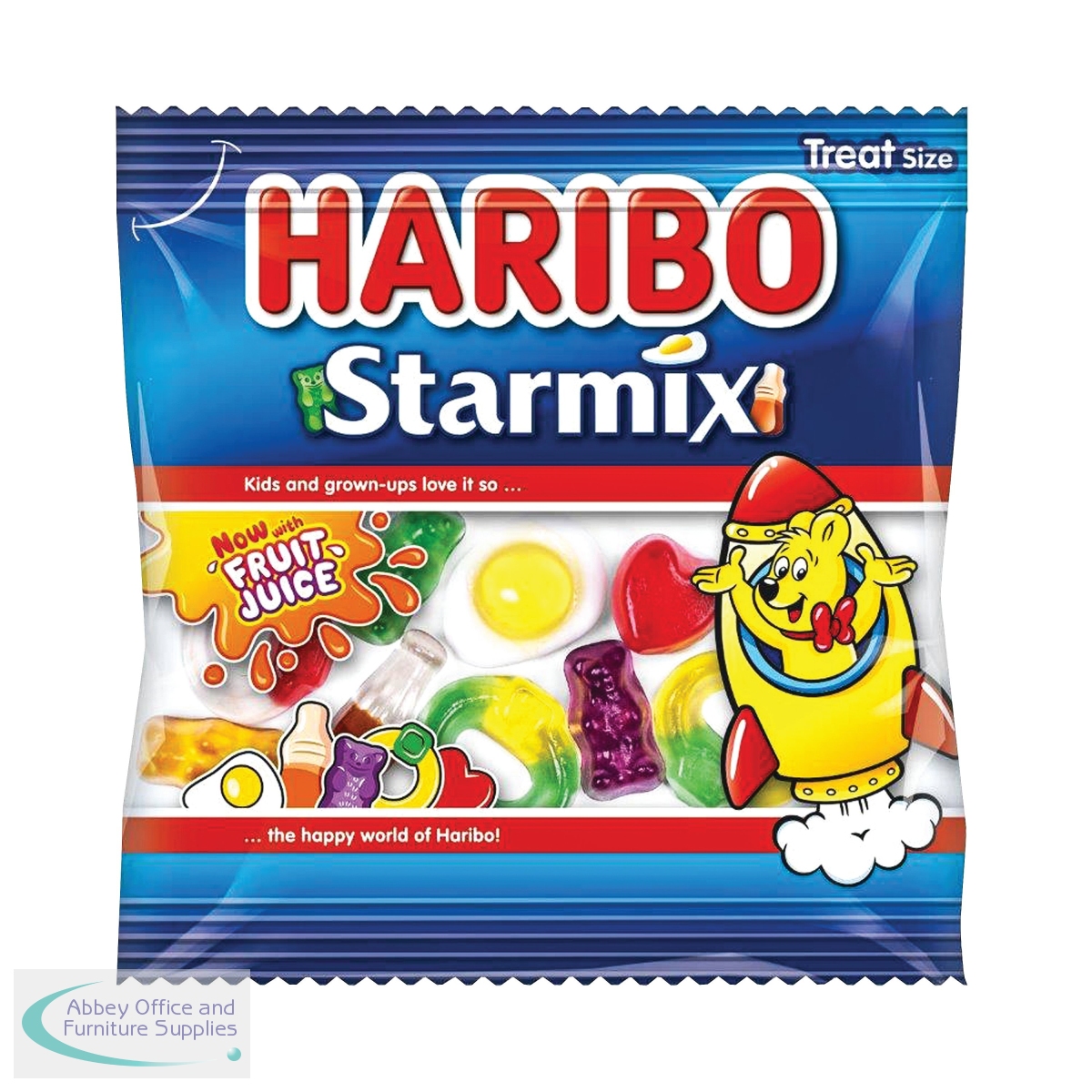 Handy, treat sized bags of Haribo Starmix. Combines a selection of their most popular sweets, including rings, fried eggs, hearts, gummy bears and cola bottles. Each bag contains 16g of sweets, great for sharing, parties and celebrations. This pack contains 100 bags.