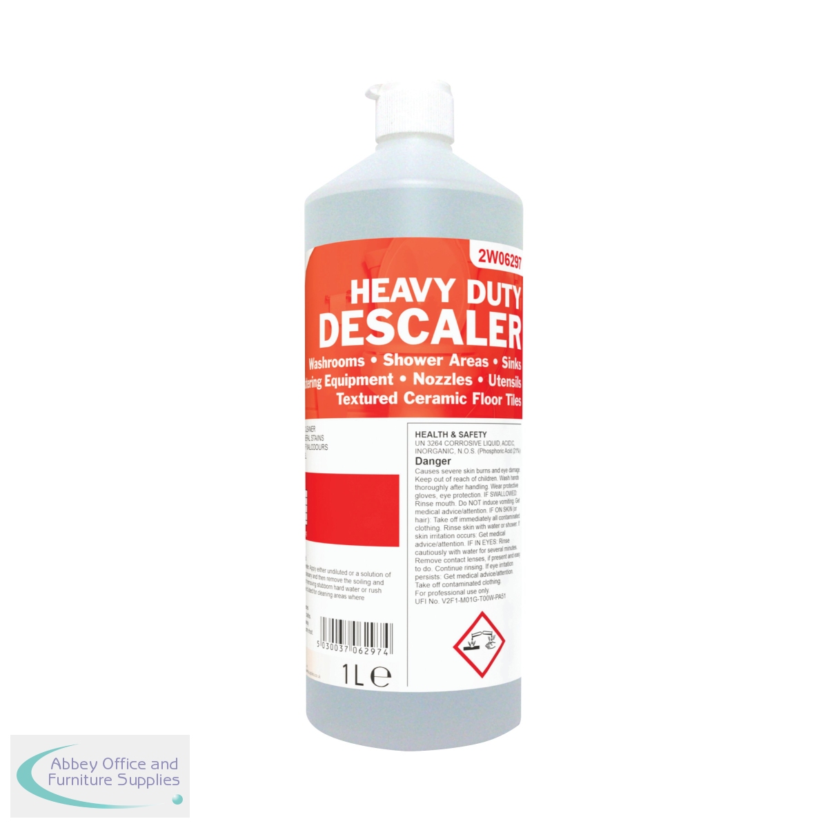 This 2Work Heavy Duty Descaler and Toilet Cleaner gets washrooms, kitchens, showers and changing rooms clean and smelling fresh. The powerful formula can be used neat for stubborn hard water marks or rust stains on ceramics, stainless steel and more. This cleaner can also be used diluted for economy when cleaning mineral stains. It will help remove unpleasant odours as well. This pack contains twelve 1 litre bottles.