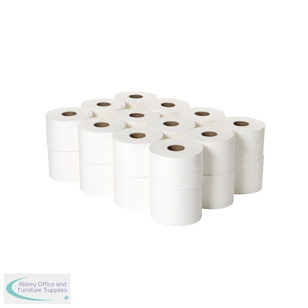 This Micro Twin Toilet Roll is designed for use with the 2Work Micro Twin Toilet Roll Dispenser. Each roll contains 125 metres of soft, white 2-ply tissue, which needs replacing less often than a conventional 200 sheet toilet roll. The compact size is ideal for smaller, but frequently used washrooms. This pack contains 24 rolls for long lasting use.