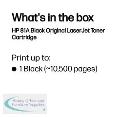 Designed to work with your HP printer, this original HP 81A toner cartridge produces professional quality results every time. Reliable and long lasting, these cartridges provide an outstanding finish to your documents, and a high print yield of 10500 pages ensures great value for frequent printing.