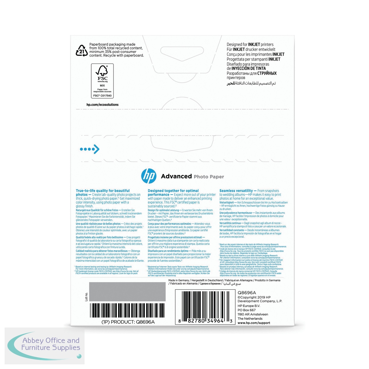 HPQ8696A - HP Advanced Glossy Photo Paper 13 x 18cm Borderless 250gsm (Pack of 25) Q8696A