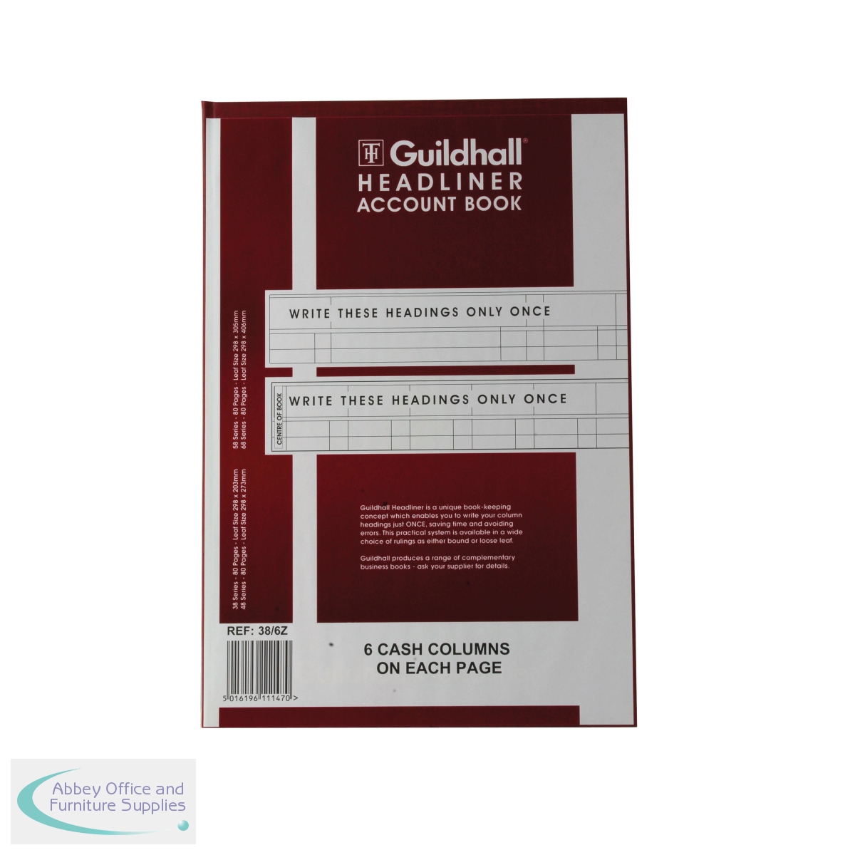 GH386 - Exacompta Guildhall Headliner 6 Cash Column Account Book 38/6 1147