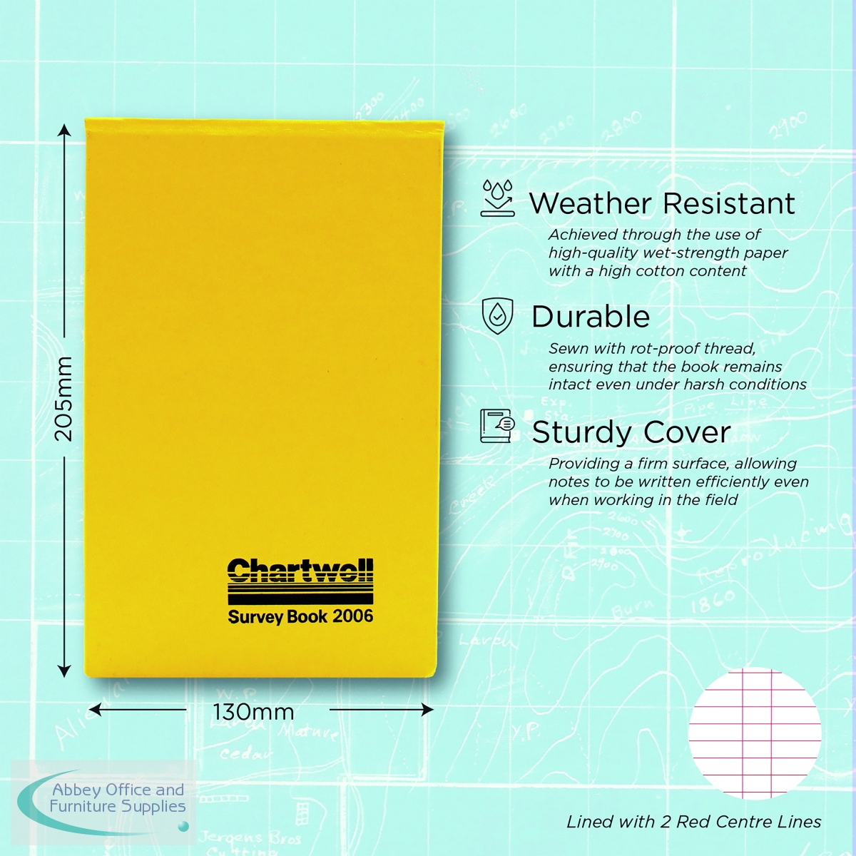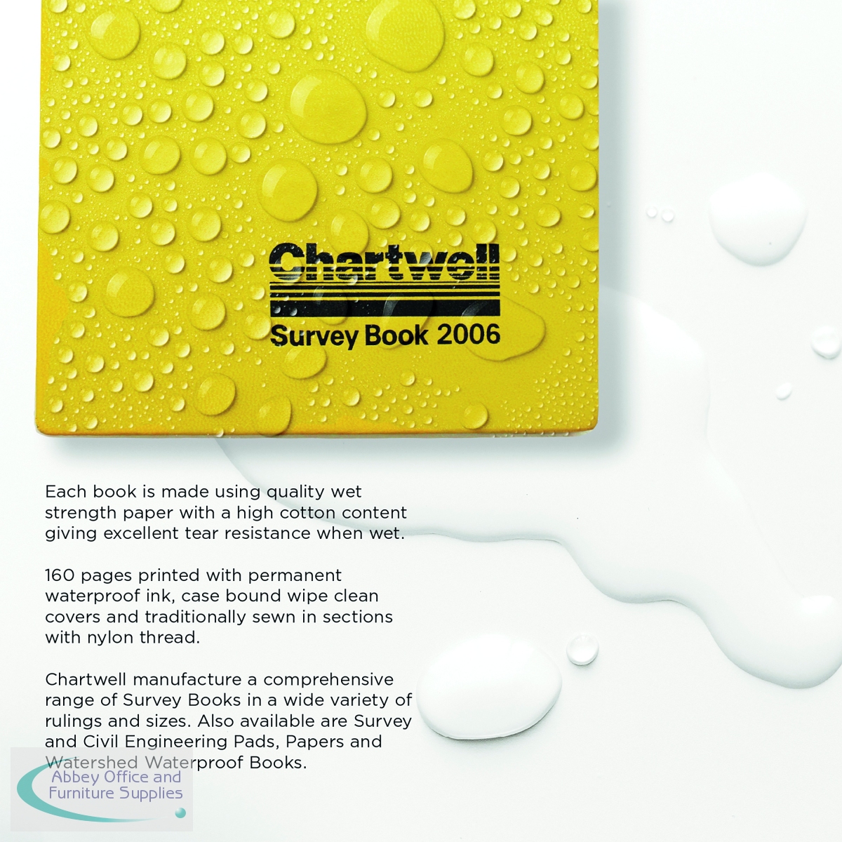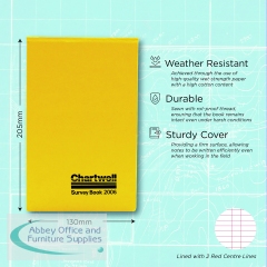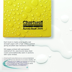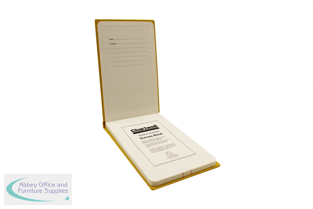 This Exacompta Chartwell Survey Book has been designed for use in the most adverse weather or site conditions. The paper has been made using the highest cotton content to prevent tearing when wet, ensuring the pages retain their integrity when coming in to contact with liquids. The wet strength paper is developed to the highest specifications and is sewn in section using durable nylon binding to withstanding the most demanding of environments. The cover folds out flat to create a level writing surface for use on the go while at sites or to sit flat on a desk.