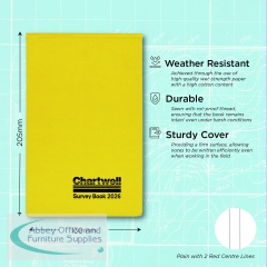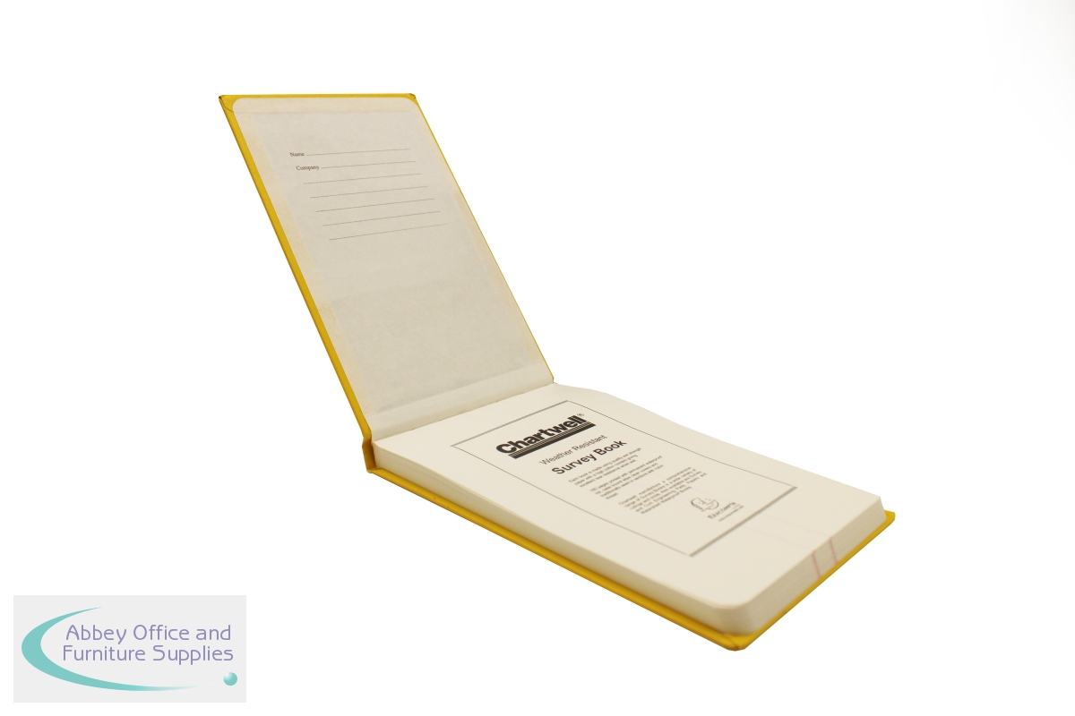 This Exacompta Chartwell Survey Book has been designed for use in the most adverse weather or site conditions. The paper has been made using the highest cotton content to prevent tearing when wet, ensuring the pages retain their integrity when coming in to contact with liquids. The wet strength paper is developed to the highest specifications and is sewn in section using durable nylon binding to withstanding the most demanding of environments. The cover folds out flat to create a level writing surface for use on the go while at sites or to sit flat on a desk.