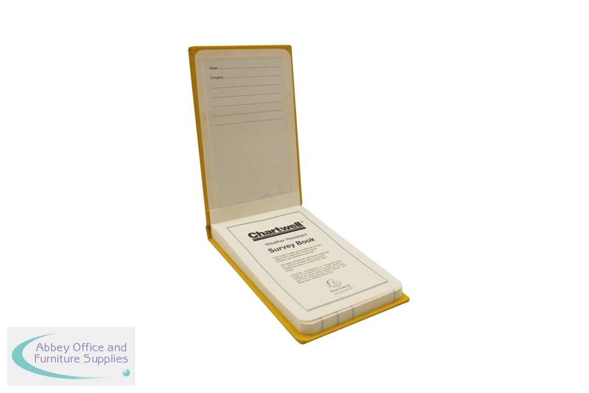 This Exacompta Chartwell Survey Book has been designed for use in the most adverse weather or site conditions. The paper has been made using the highest cotton content to prevent tearing when wet, ensuring the pages retain their integrity when coming in to contact with liquids. The wet strength paper is developed to the highest specifications and is sewn in section using durable nylon binding to withstanding the most demanding of environments. The cover folds out flat to create a level writing surface for use on the go while at sites or to sit flat on a desk.