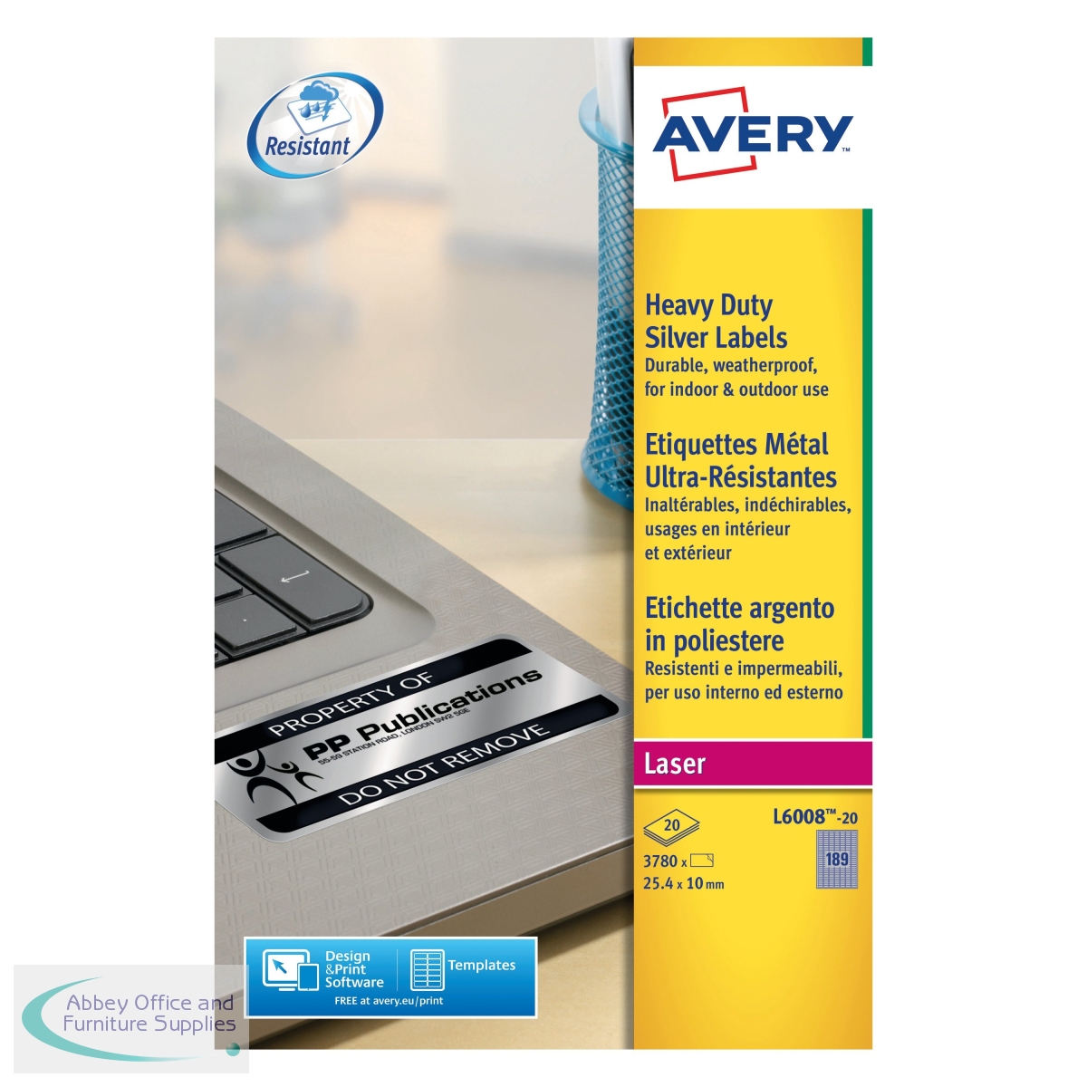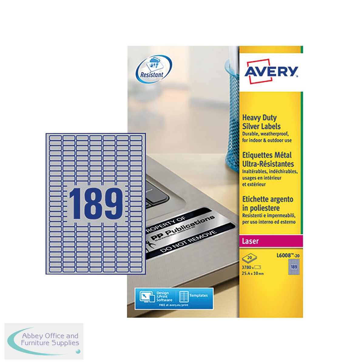 AV13606 - Avery Laser Label H/Duty 189 Per Sheet Silver (Pack of 3780) L6008-20