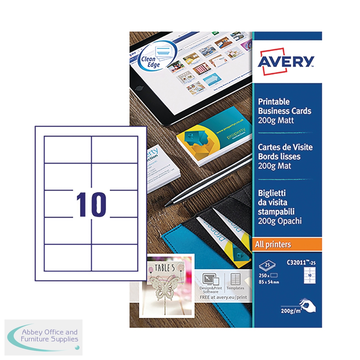 AV10414 - Avery Multipurpose Business Cards Matte White (Pack of 250) C32011-25