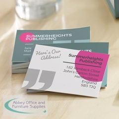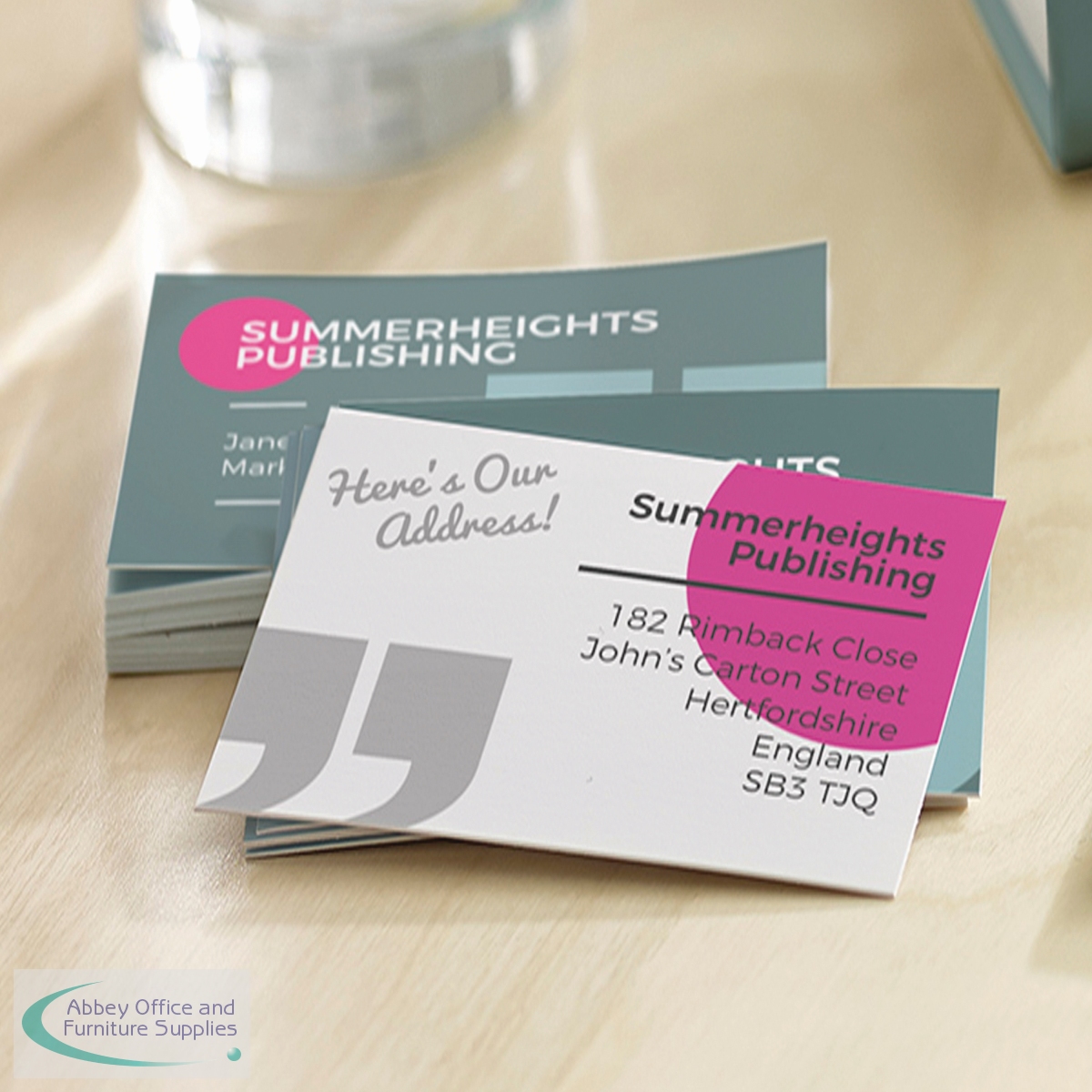 These stylish, multipurpose 200gsm business cards are suitable for use with laser, inkjet and multifunction printers, and feature a super smooth, matte finish. The single sided business cards measure 85 x 54mm. This pack contains 25 A4 sheets with 10 white business cards per sheet (250 business cards in total).