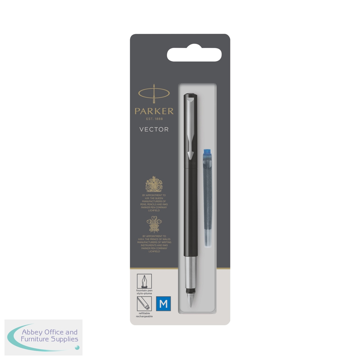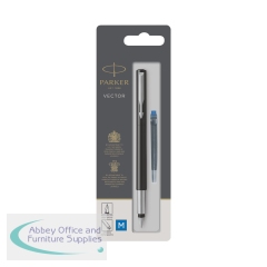 This sturdy and sharply defined, stylish pen features a stainless steel nib to ensure the best possible line quality and fluid control. It is designed for easy, mess-free use by both students and professional users. The Vector fountain pen uses standard Parker Quink ink cartridges. One blue cartridge is supplied so you can get started writing straight away.
