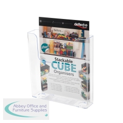 Ideal for exhibitions, displays and reception desks, this Deflecto Literature Holder holds A5 literature. It is made from unobtrusive clear plastic that lets your literature stand out, with a sleek profile that fits neatly into any decor. The flat back lets you mount the holder to a wall or flat surface for eye-catching presentation.