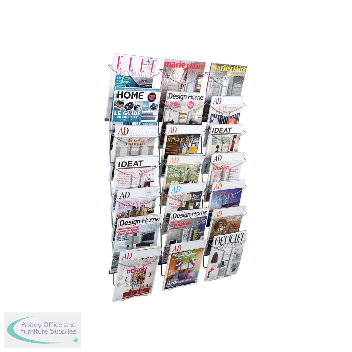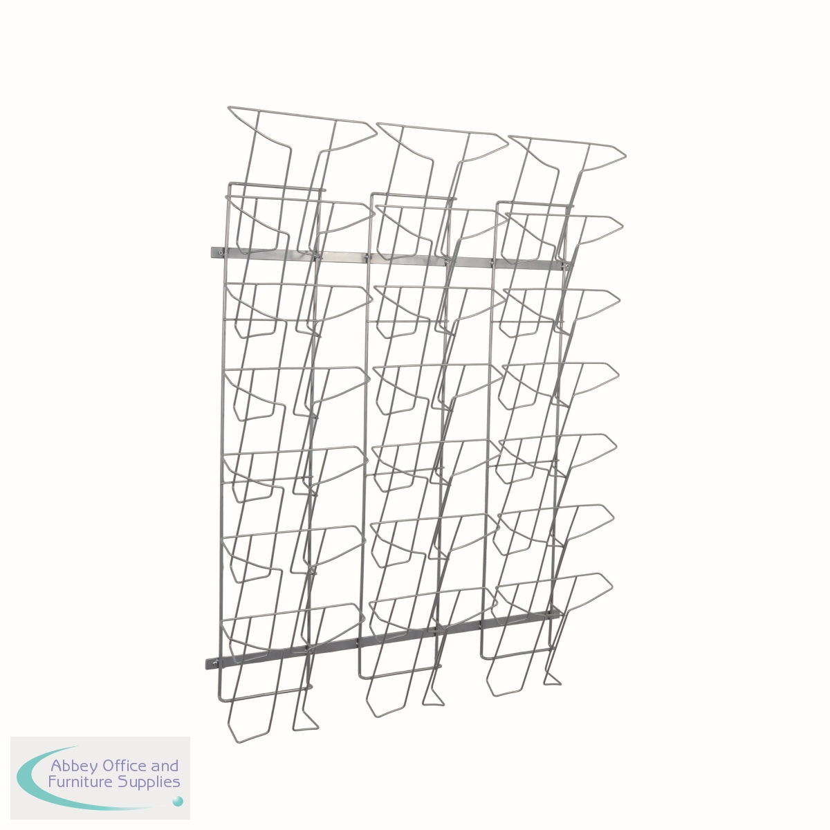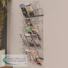 Perfect for use with magazines, corporate literature and brochures, the Alba Wall Mounted Standing Display is great for all businesses. You can encourage visitors to learn more about your business using the 21 pockets (three tiers of seven) for A4 literature and magazines. Manufactured from durable chrome-finish wire and with a contemporary design, this display is designed to last and suits any decor. It comes with a fixing kit for easy installation. Key Features