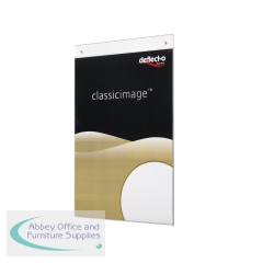 The Deflecto Clear Wall Sign Holder is ideal for use in retail as a promotional or informational display for customers, or in an office to hold internal notices or canteen menus. The durable clear plastic not only adds a professional gloss to your posters, it also protects paper from creases or damage. This sign holder is pre-drilled for easy wall mounting.