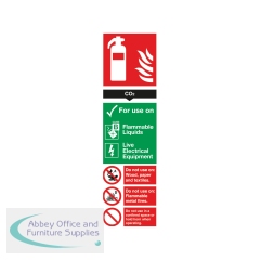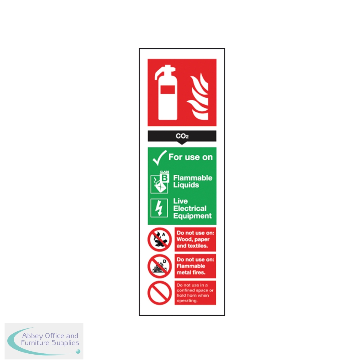 This sign details safe applications for carbon dioxide fire extinguishers. Simple to understand, using recognisable symbols and a universal colour scheme, this sign keeps employees, customers and visitors informed in the event of a fire. This self-adhesive sign measures 300 x 100mm.