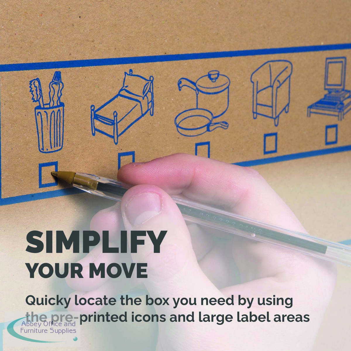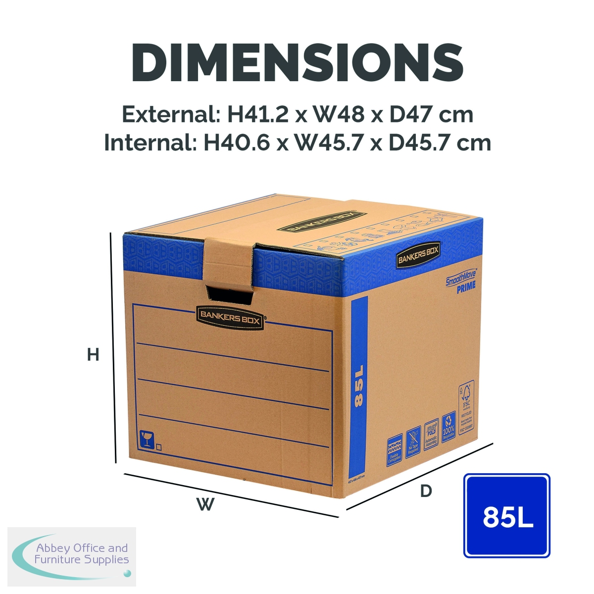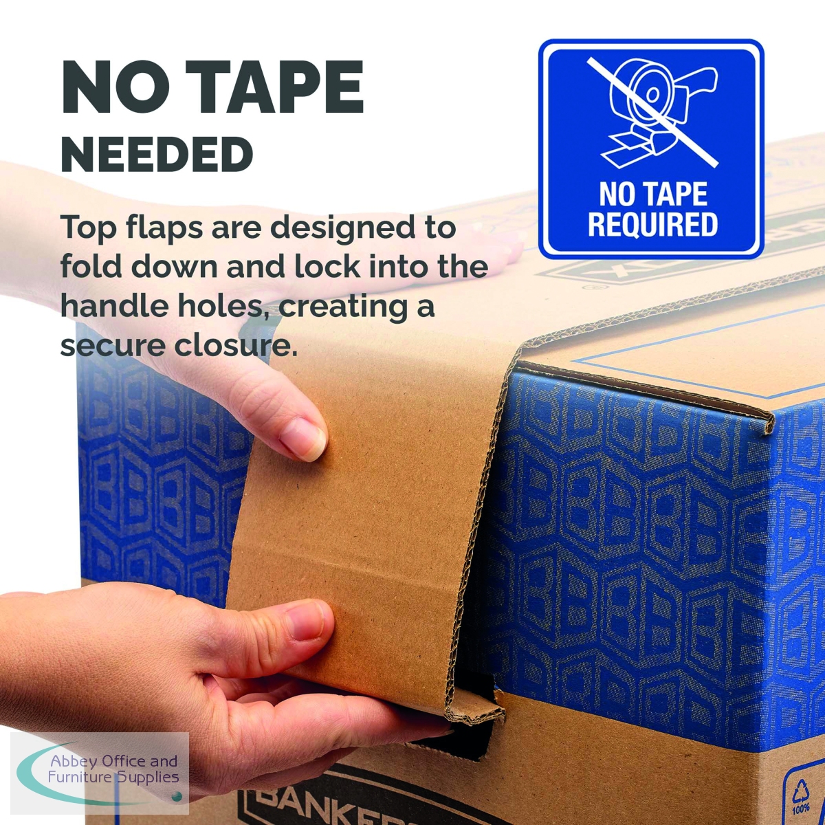 Fellowes Bankers Box SmoothMove Fastfold Removal Box is an environmentally friendly, reusable box made from strong double thickness corrugated board. It features Fastfold automatic assembly for your convenience. Each box has a secure locking lid and reinforced hand holes for easy storage, transportation and to protect the integrity of the contents. These large boxes come flat packed in a pack of 5.
