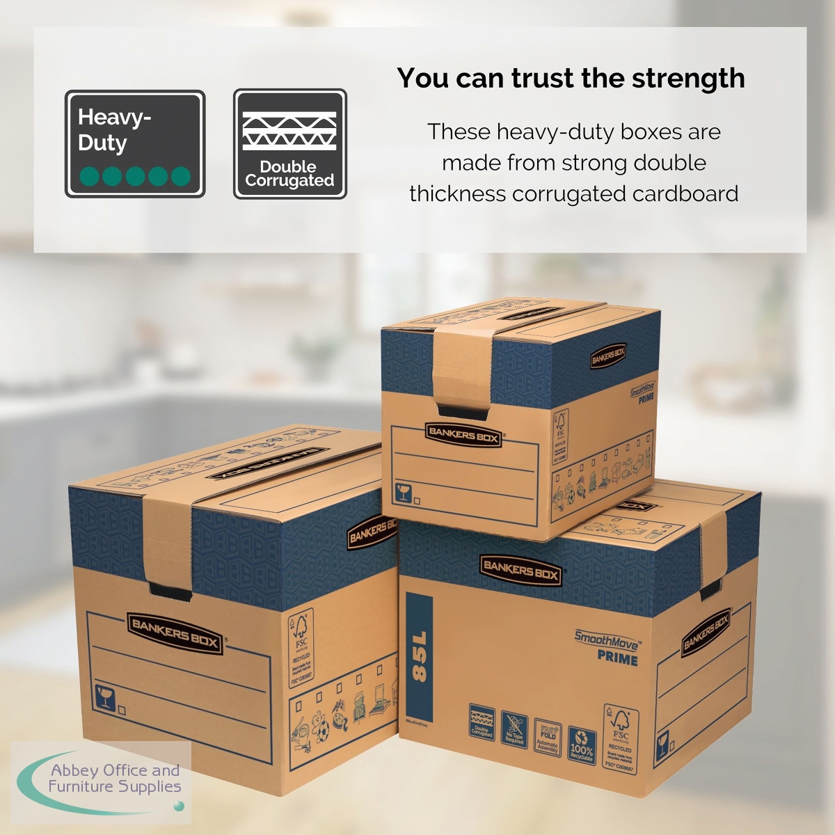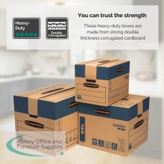 Fellowes SmoothMove Prime Ultra HD FastFold moving box is an environmentally friendly, reusable box made from 100% recycled double thickness corrugated board. It features Fastfold automatic assembly for your convenience. Each box has a secure locking lid and reinforced hand holes for easy storage, transportation and to protect the integrity of the contents. Labelling space on the side of the box offers effortless identification of contents at a glance, ensuring this box is easily incorporated into your current filing system. These extra-large, 127 litre boxes come flat packed in a pack of 5.
