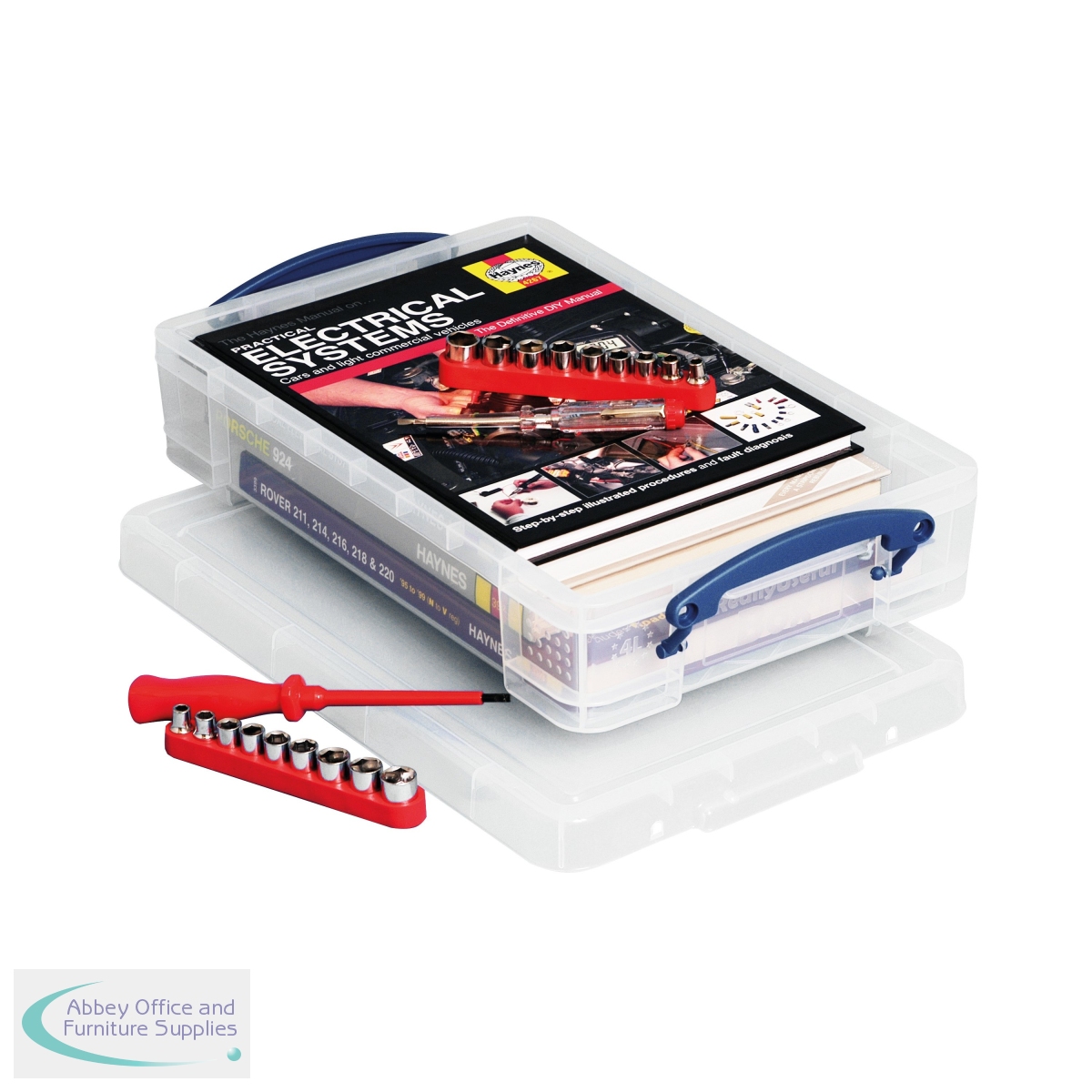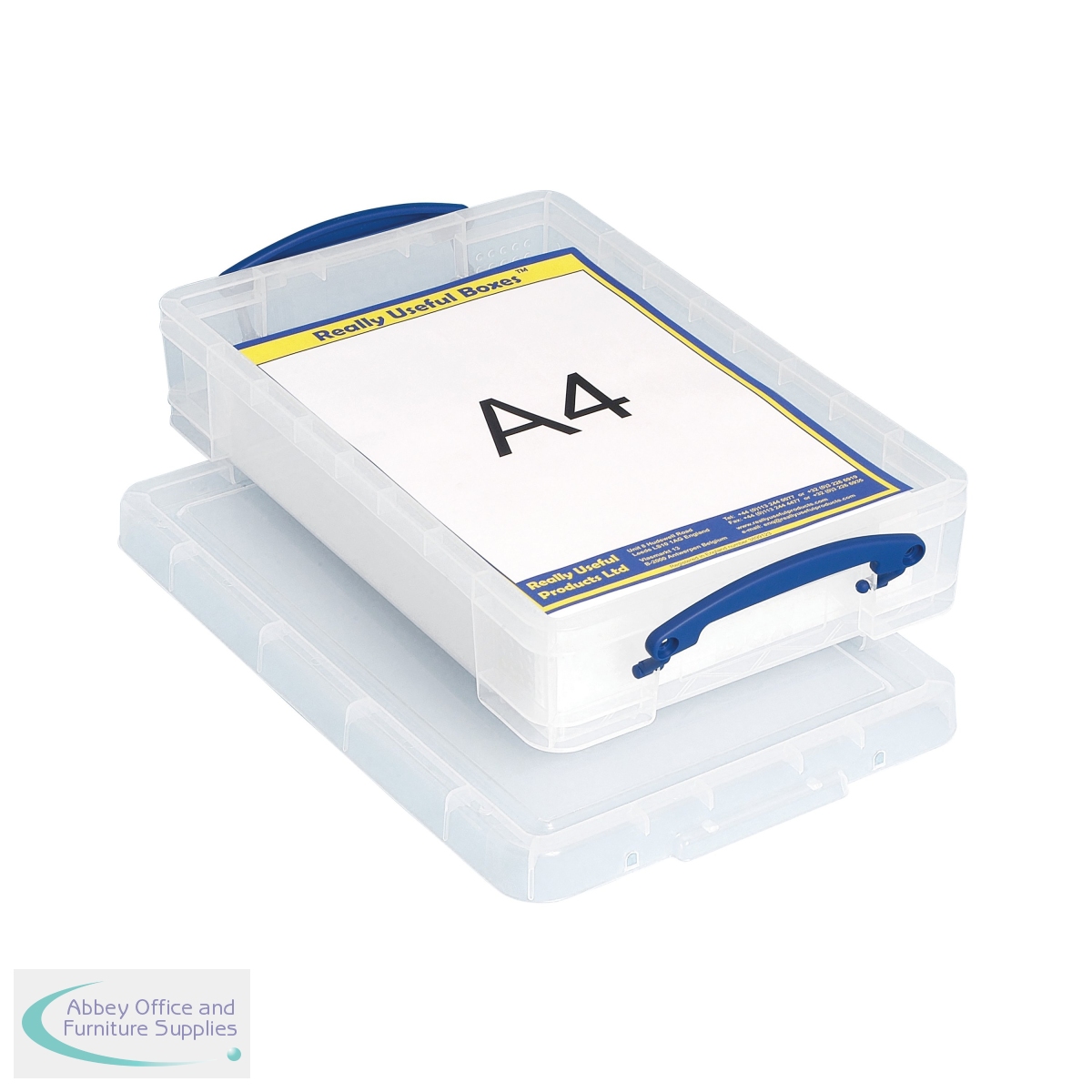 Keep files and documents neatly stored away in this 4 Litre Plastic Storage Box from Really Useful. With 4L of capacity, the interior is suitable for storing a single ream of A4 paper (500 sheets). The clear sides let you see contents at-a-glance for efficient organisation, and provide sturdy protection from the elements and vermin. The design is stackable as well for space-saving storage, and features handles for easy carrying.