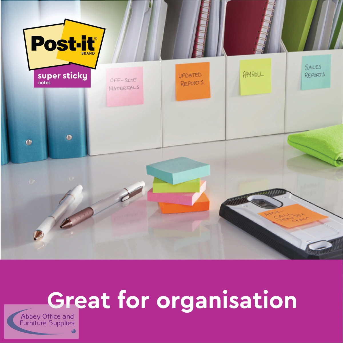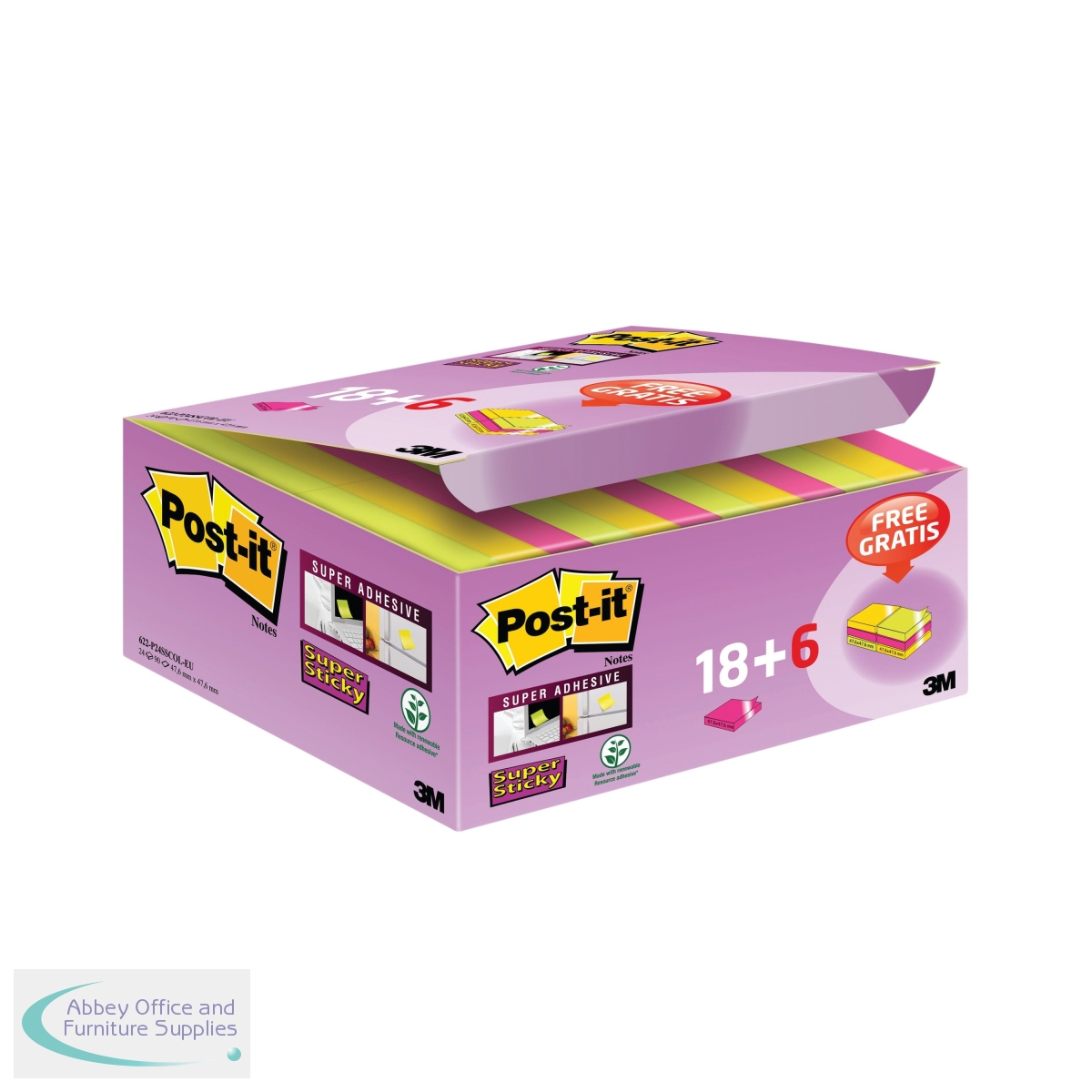 [ Post-it; Books, Pads & Albums; Repositional Notes; Super Sticky; OEM Code 622- P24SSCOL; EAN 00051141998763; VOW Code 3M99876 ]