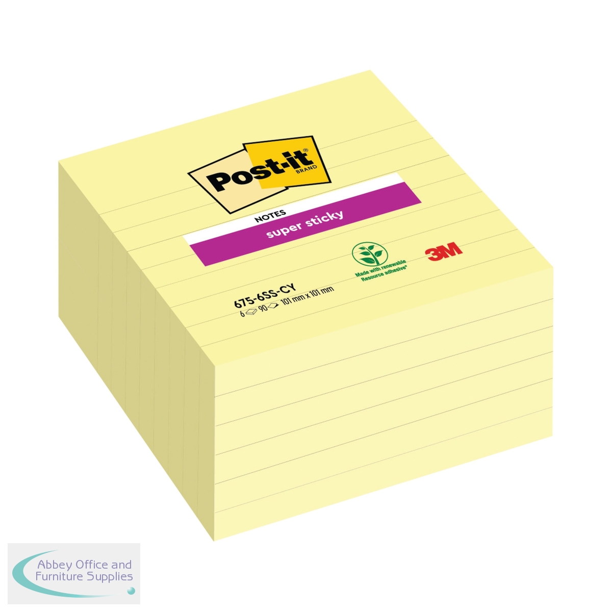 3M99883 - Post-it Super Sticky 101x101mm Lined Canary Yellow (Pack of 6) 675-SS6CY