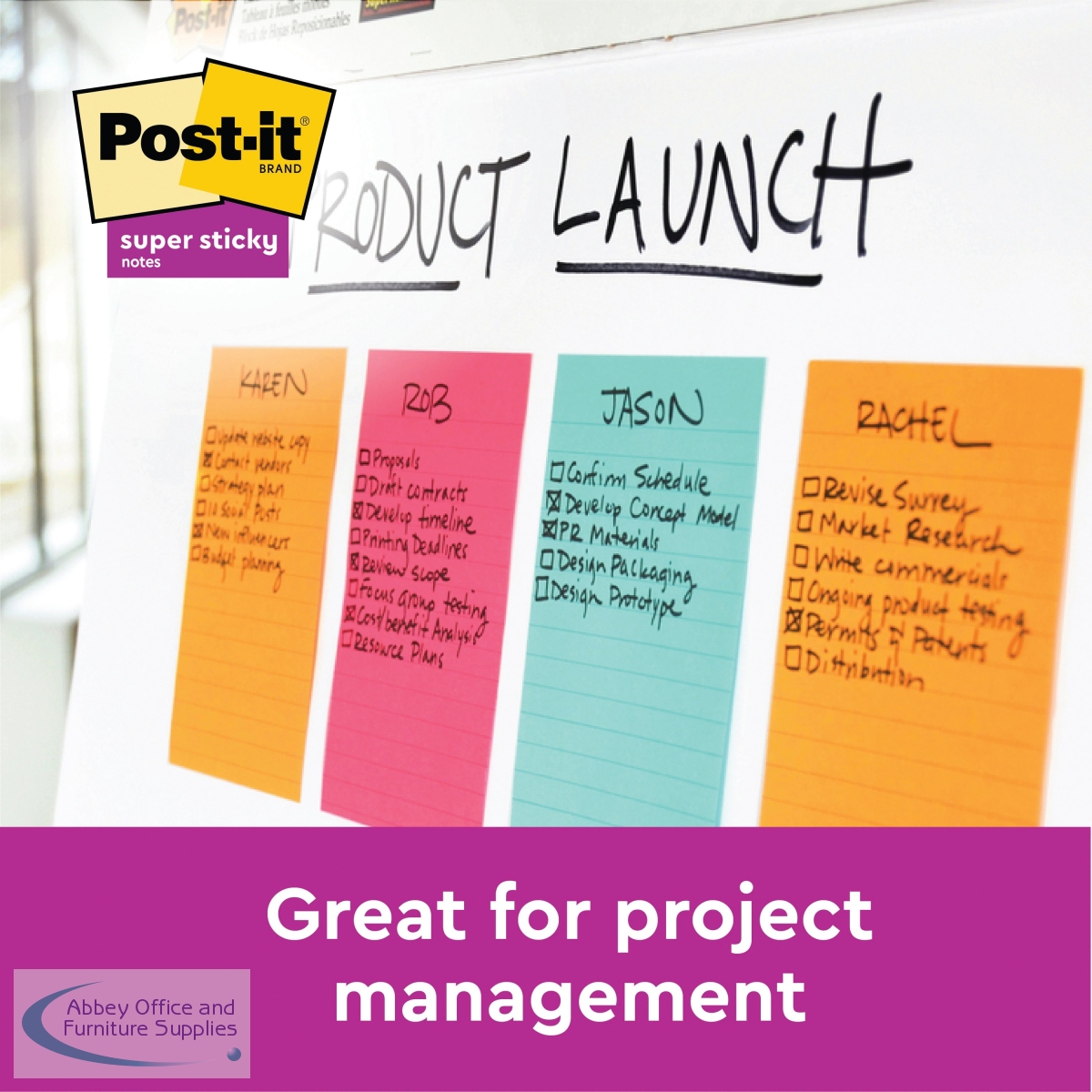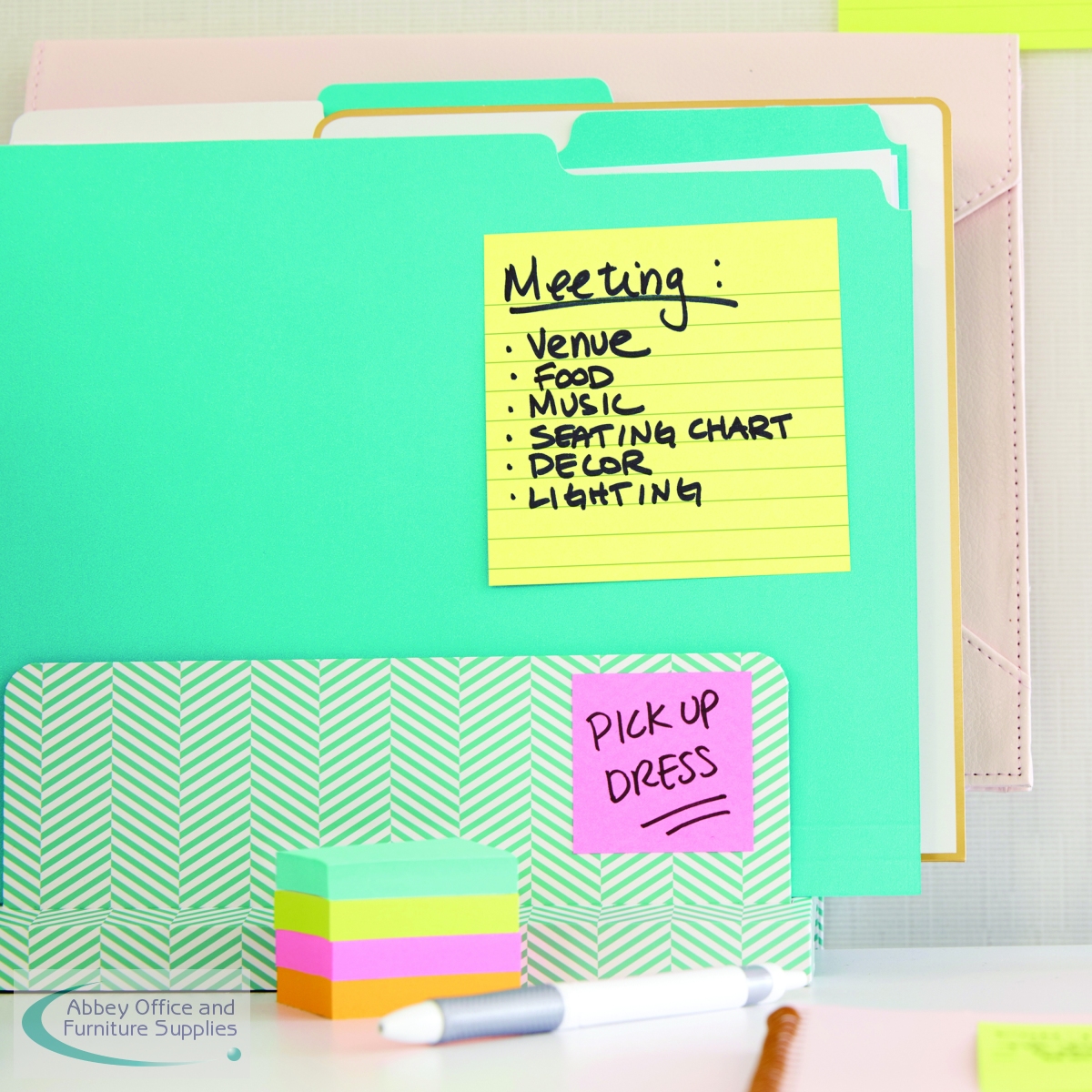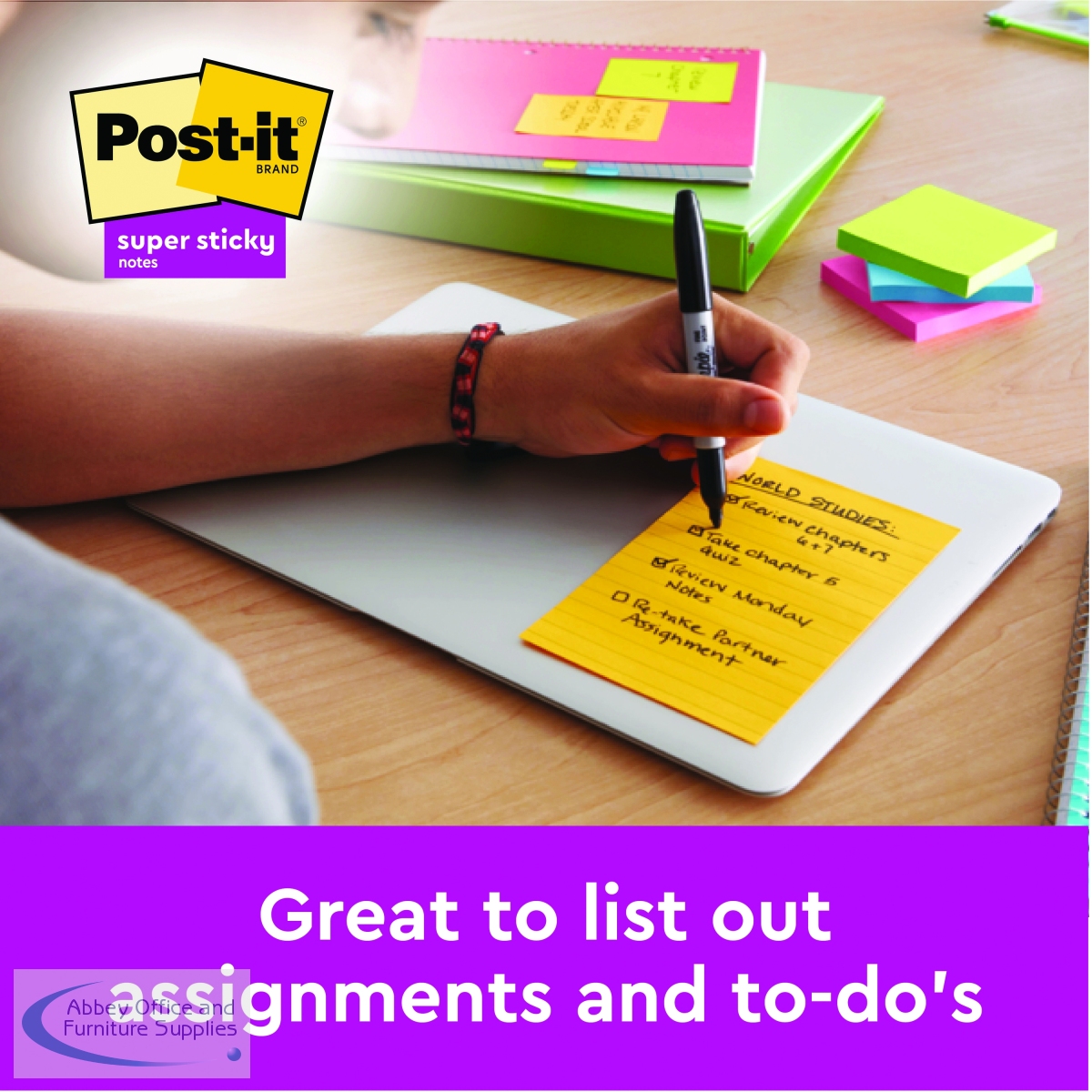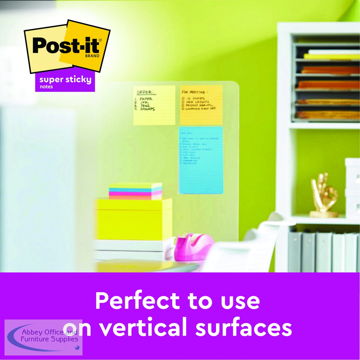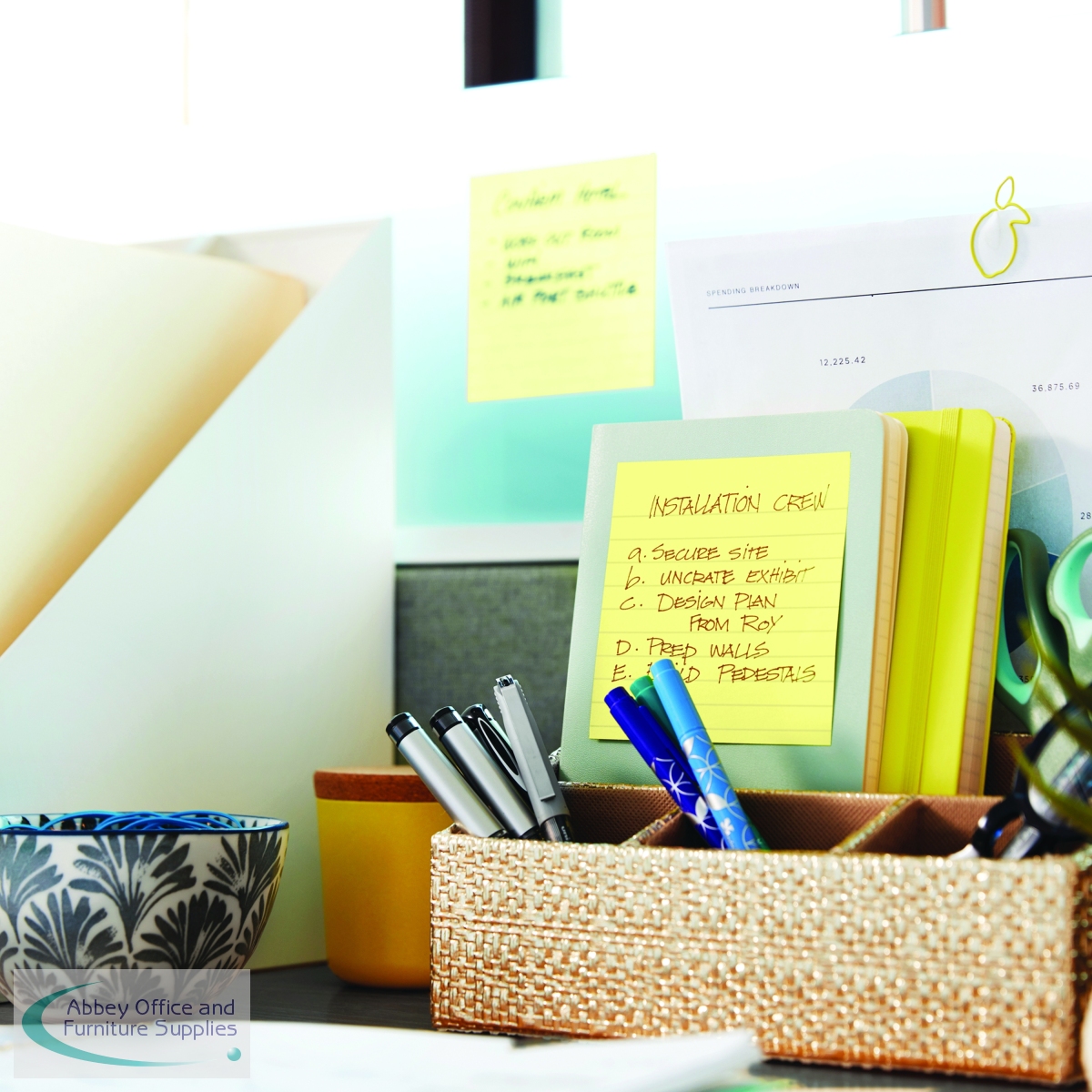 Supplied in vibrant Canary Yellow, these feint ruled Super Sticky Post-it Notes are ideal for extra staying power compared to standard notes. The Super Sticky backing sticks more securely to a range of materials, including vertical surfaces. Ideal for longer messages, notes and reminders, each XL pad contains 90 sheets and measures 101 x 101mm. This pack contains 6 pads in classic Canary Yellow.