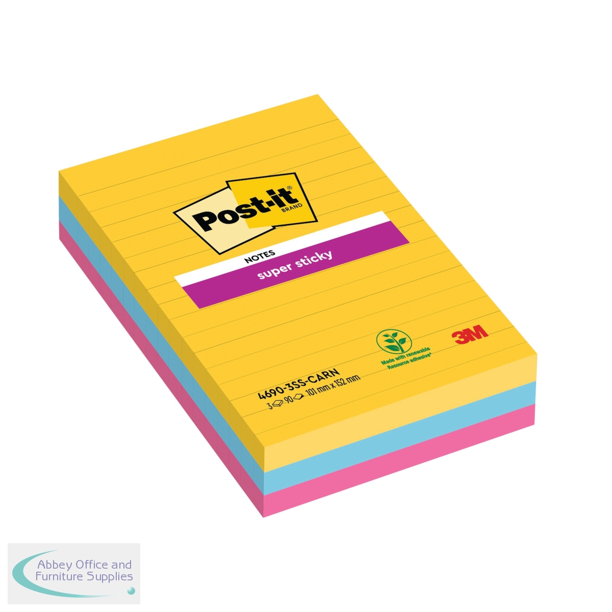 3M99884 - Post-it Super Sticky XXL Notes 101x152mm Lined Rio (Pack of 3) 4690-SS3RIO