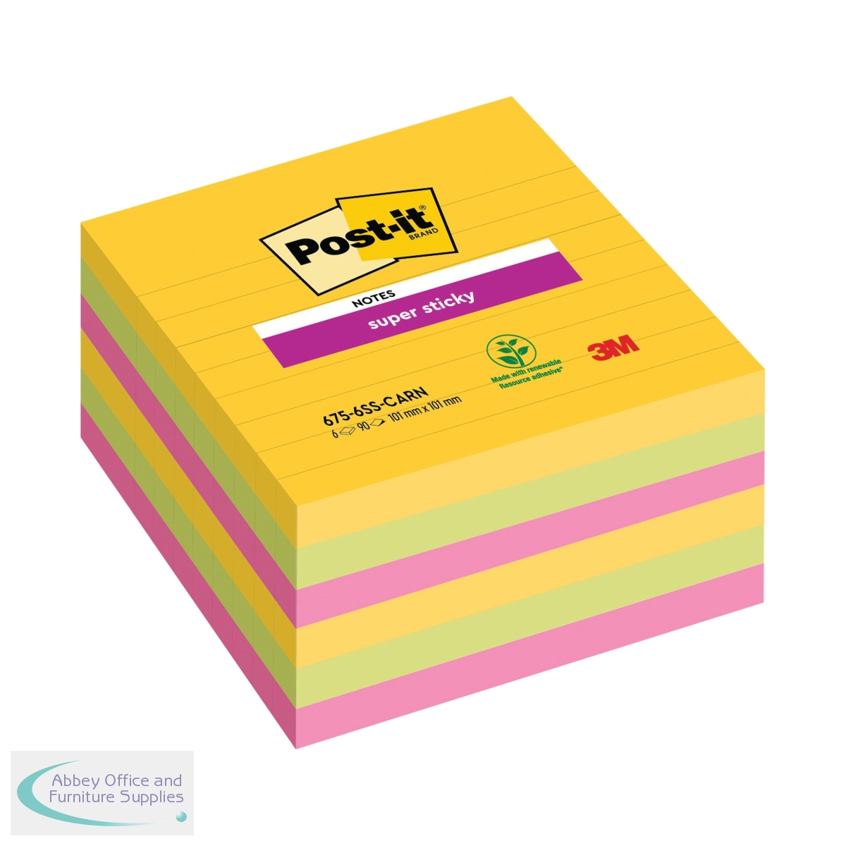 [ Post-it; Books, Pads & Albums; Repositional Notes; Super Sticky; OEM Code 675-SS6-RIO; EAN 00051141998855; VOW Code 3M99885 ]