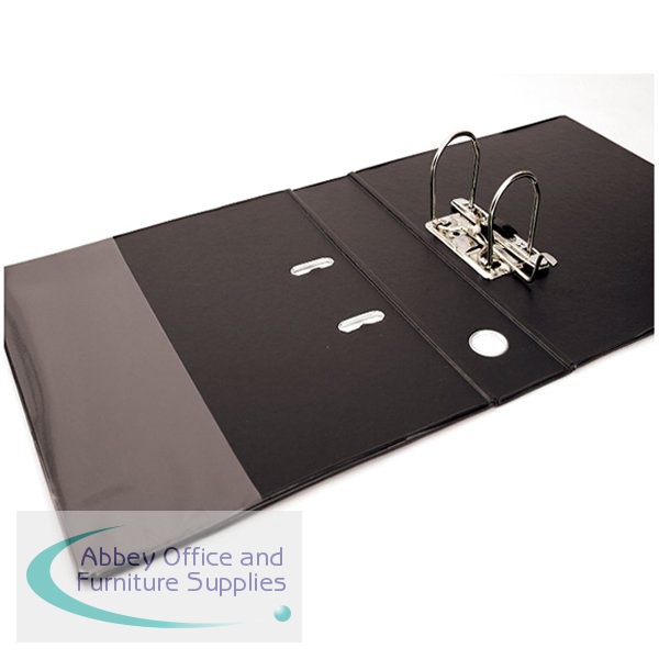 This stylish, professional Elba Vision file features a standard lever arch mechanism with a 70mm capacity for filing A4 documents. The file features full length clear pockets on the front and back for personalisation and a spine label for quick identification of contents. The file also features durable, heavyweight PVC covers for long lasting use. This pack contains 1 black lever arch file.
