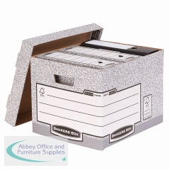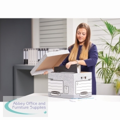 This heavy duty Bankers Box is made from durable, double thickness corrugated board and features time saving Fastfold assembly. The box can hold ring binders, lever arch files, suspension files and Bankers Box 120mm transfer box files. The box also features reinforced handles and can be stacked up to 6 high for space saving storage. This pack contains 10 grey boxes measuring W333 x D390 x H285mm (internal).