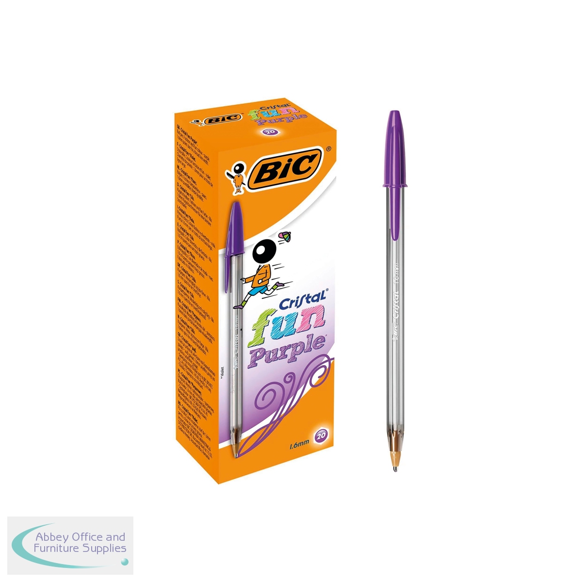 The Bic Cristal Fun Ballpoint Pen features a durable tungsten carbide ball mechanism and oil-based ink for smooth, controlled writing. The vibrant purple ink and larger 1.6mm tip gives a thicker 0.6mm line ideal for stylish titling, designing and larger handwriting. The lightweight barrel has a smoky, translucent finish and is hexagonal for comfort in use. This pack contains 20 purple pens, great for colour coordinating your work.