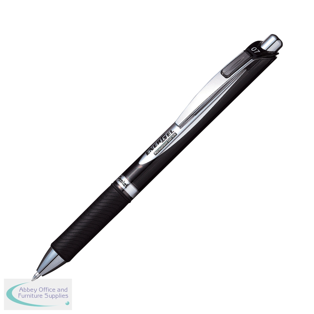 Filled with waterproof and light-fast permanent ink this fine point retractable liquid gel pen from Pentel is ideal for use on cheques contracts and archival documents. The super smooth permanent ink is also quick drying helping to prevent smudges on official documentation. The fine 0.7mm tip writes a 0.35mm line width. This pack contains 12 black pens.