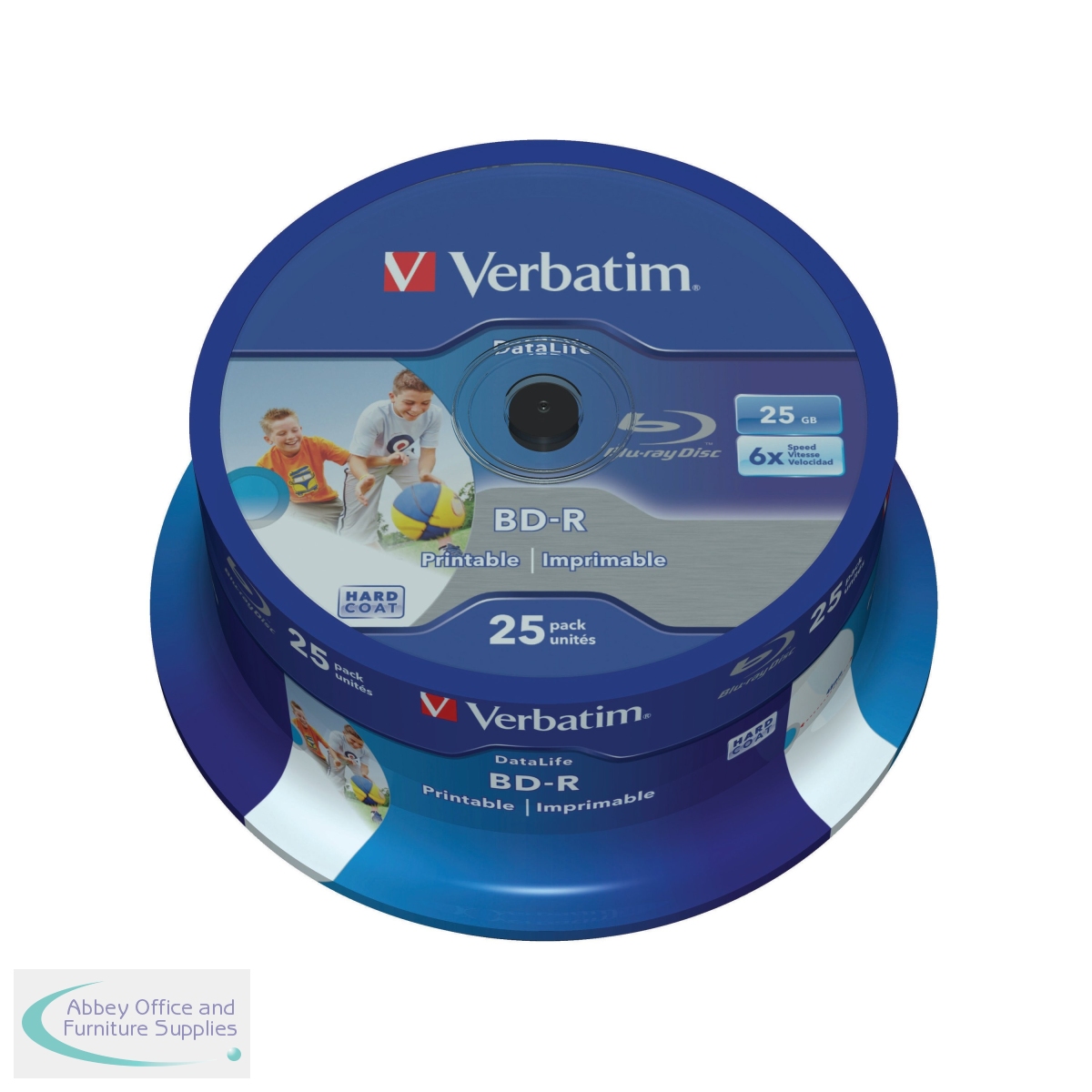 Store huge quantities of data or Full HD video on these Blu-ray discs from Verbatim. These single layer discs feature 25GB of capacity. With the BD-R Recordable format, these discs can be written once and read many times - ideal for creating videos or for archive backups. The label surface can be printed with compatible inkjet printers to create your own professional-looking label. This pack of 25 discs is supplied on a spindle for economical storage.