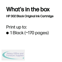 Designed for consistent results and trouble-free performance, this original HP ink cartridge delivers lab-quality colour photographs and crisp, clear documents. With brilliant, consistent colour that lasts for the life of the cartridge, smart low-ink alerts to make sure you don't run out of ink at the wrong time and improved fraud detection, the HP 302 ink cartridge helps to make your everyday printing jobs quicker, cheaper and easier. Compatible with the Deskjet OJ 3830, this black cartridge has a print yield of 170 pages.