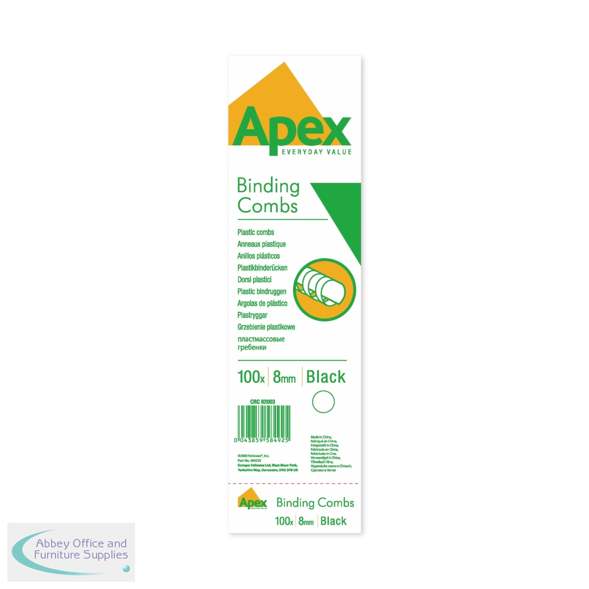 BB58492 - Fellowes Apex Plastic Binding Combs 8mm Black (Pack of 100) 6200301