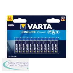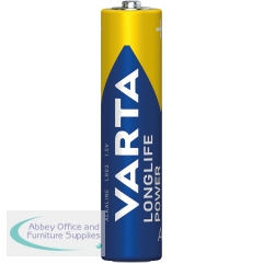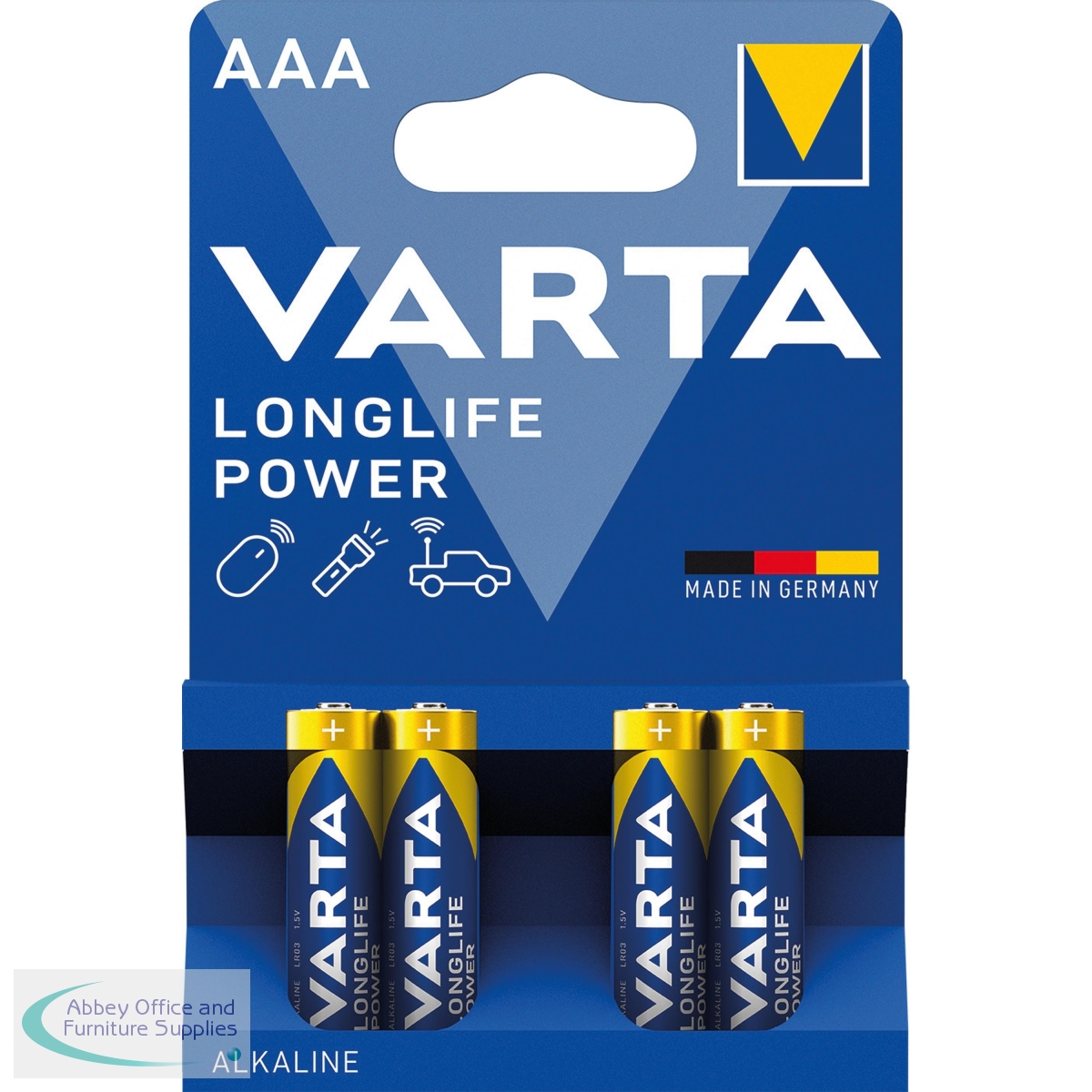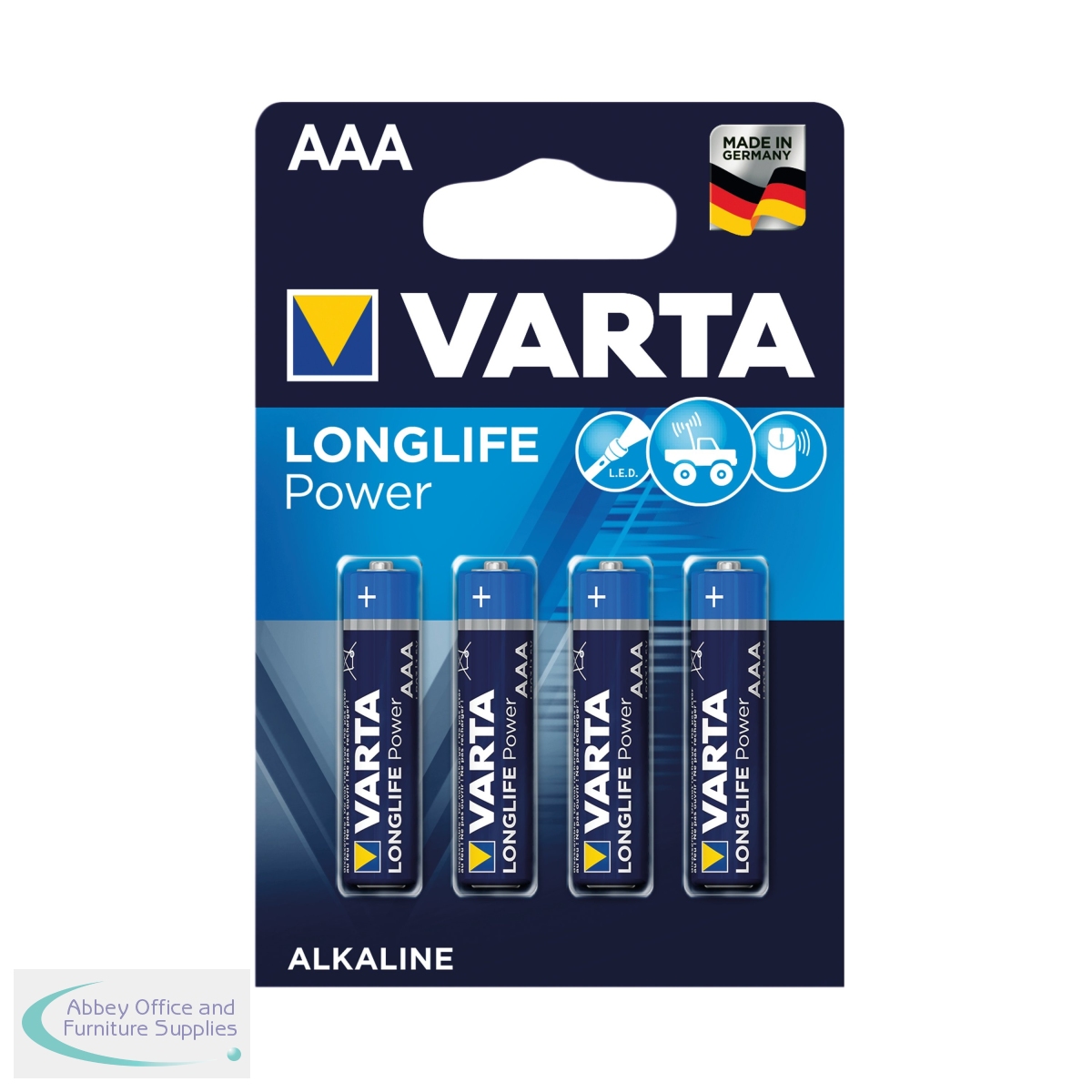 Varta Longlife Power AAA Battery (Pack of 4) 4903121414. Varta Longlife Power is developed especially for devices with high energy consumption. Powerful energy for power-hungry devices, e.g. battery-operated toys, wireless mouse, flashlights etc. Guaranteed storage time of 10 years. Made in Germany - made to last, VARTA brand quality ensured. System: Primary Alkaline Manganese. Size: AAA. Voltage: 1.5V. Pack of 4.