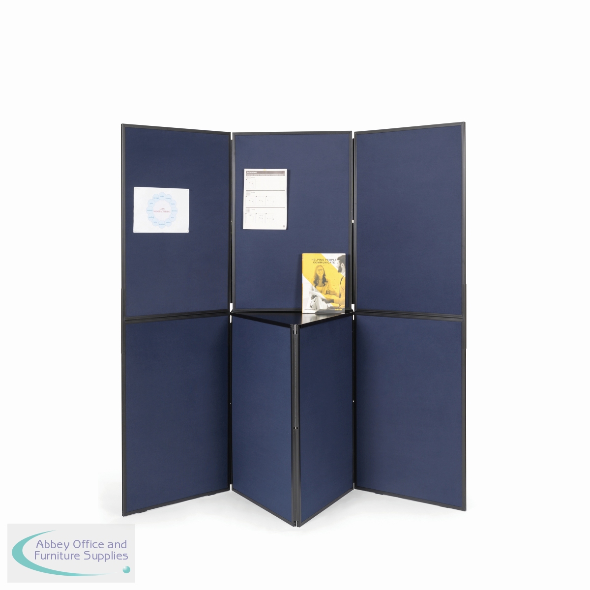 The Q-Connect 7 Panel Display Board is a lightweight easy assembly folding display system that allows smart and interactive space management, while creating extra surface to put up information. The display system can be folded flat and reconfigured or extended. Each panel has a black plastic frame and blue nylon felt on one side and grey nylon felt on the other side. This display system consists out of 7 panels. Panel dimensions: 60 x 90cm. Assembled dimensions: 180 x 180cm.