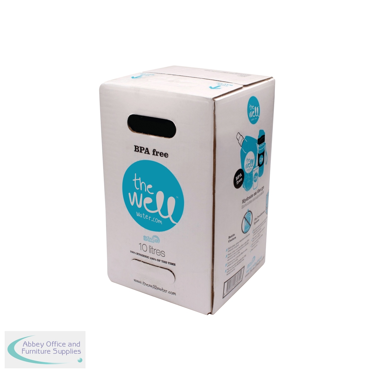 10 Litre Bag in Box water. The ultimate in water purity sourced from Glencar Spring water in Ireland or Purely Scottish Natural Mineral Water in Scotland.This unique packaging protects the water from external light/ airborne or human induced contamination and keeps this high quality Natural Spring Water in the dark of its box - untouched by any external contamination and as pure as the day it was packaged.The packaging is BPA free - and so no packaging induced chemical contamination can be introduced.