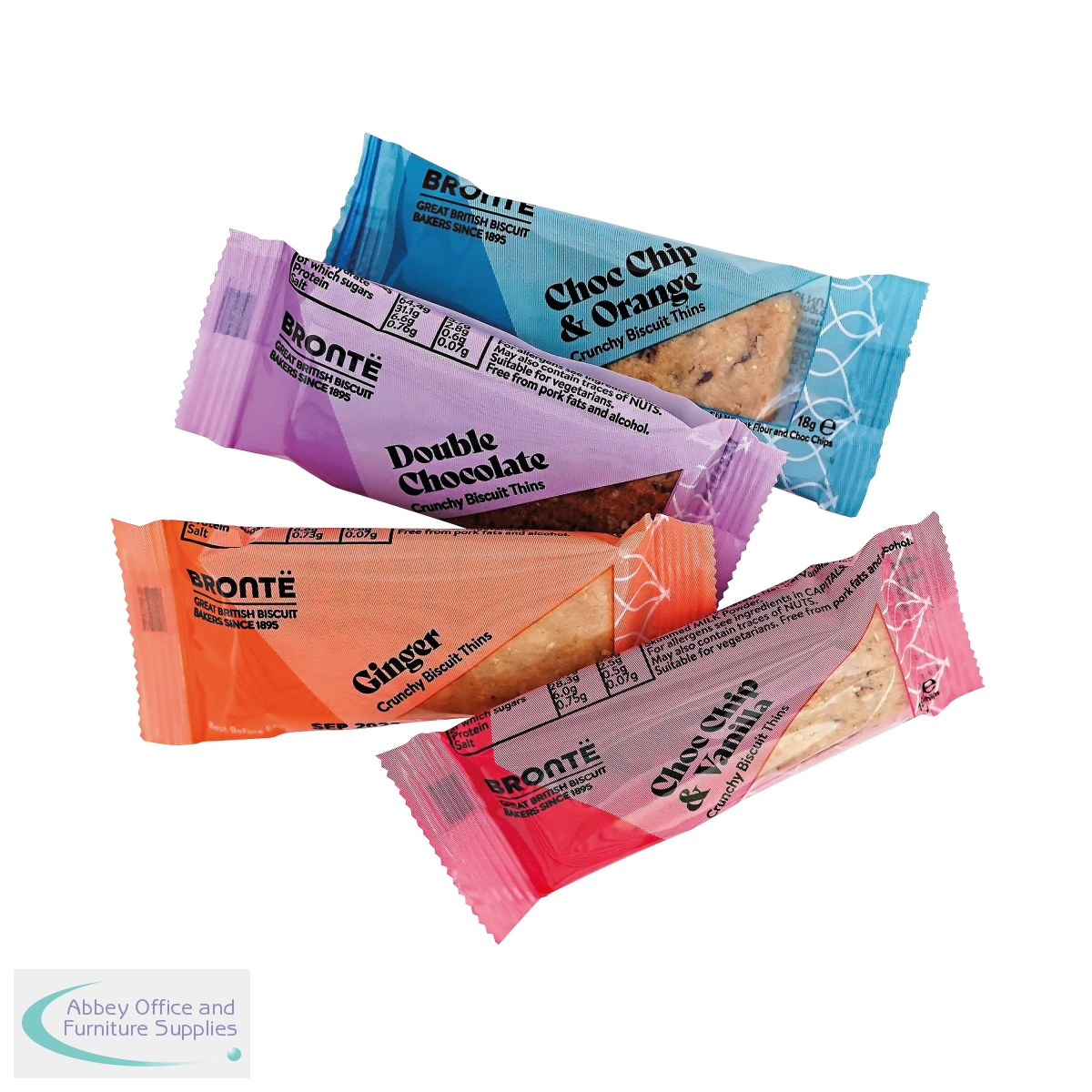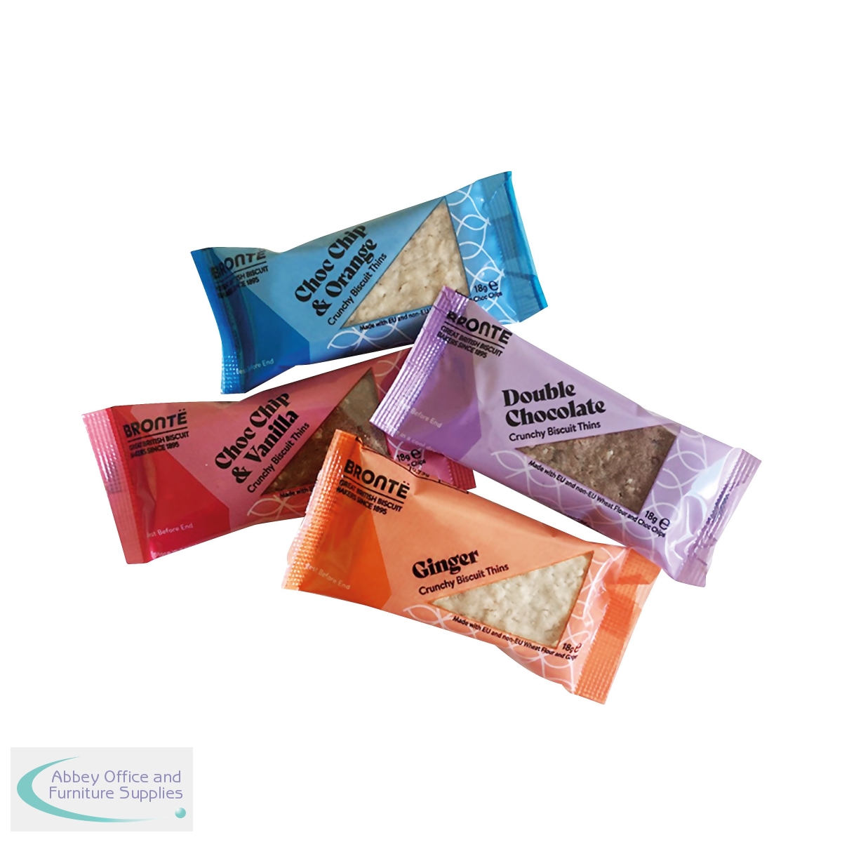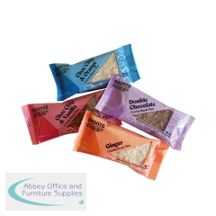 These Caf Bronte biscuits come in individually wrapped twin packs, perfect for hotels, shared kitchens and more. This bulk pack of 100 contains chocolate chip & orange, chocolate chip & vanilla, ginger and double chocolate biscuits, with 25 biscuits of each variety. Perfect as accompaniment to tea or coffee, or as a snack or treat any time of the day.