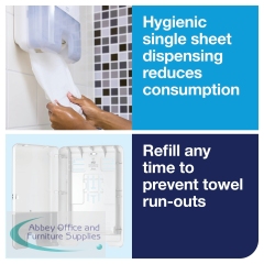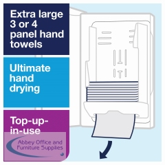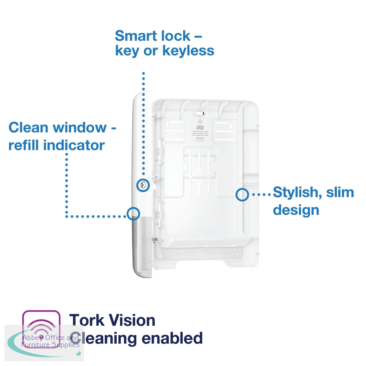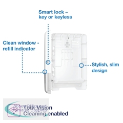 An attractive housing unit for Tork H2 multi-fold hand towels, this Tork Xpress hand towel dispenser is ideal for low to medium traffic washrooms, in a sleek and stylish finish. The space saving design with a front opening to allow easy towel refilling. The dispenser will dispense one sheet at a time, reducing consumption and waste and encouraging users to use only what is necessary. Supplied in a white high gloss finish, premium quality plastic housing. With an opaque lower section to easily see when towel stock is getting low.